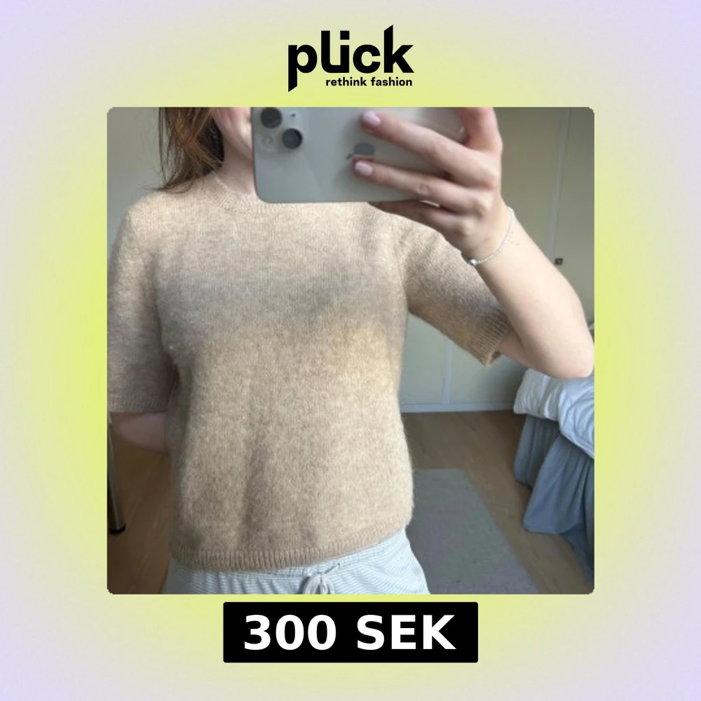 Beige stickad kortärmad tröja från STOCKH LM. Är tillverkad i en lyxig blandning av alpacka vilket gör att den är lite fluffigare. I storlek S och är bara använd 1 gång🩷