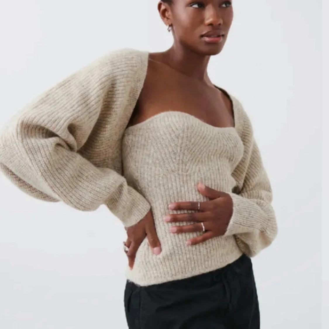 Säljer detta snygga set med en beige stickad tubtopp och matchande bolerotopp från Gina Tricot. Använt en gång och är i mycket bra skick❤️🔥