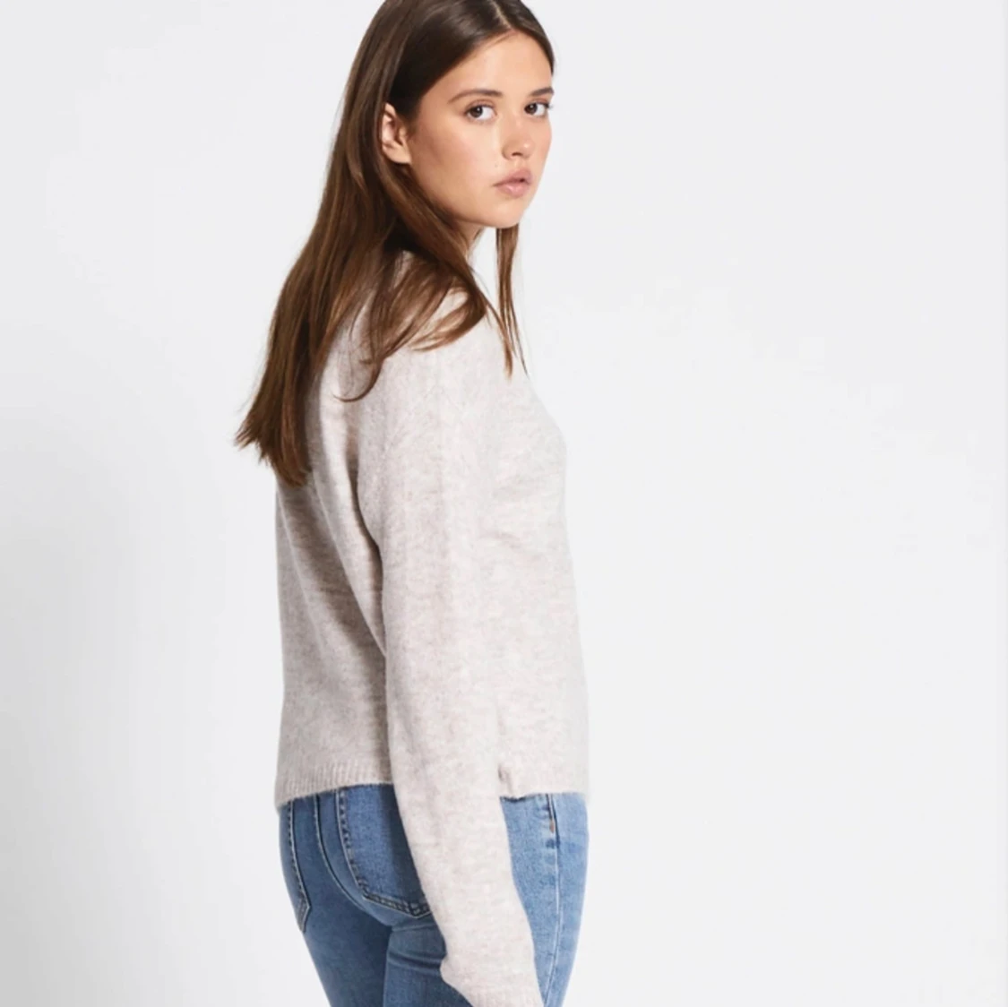 Beige stickad v-ringad tröja