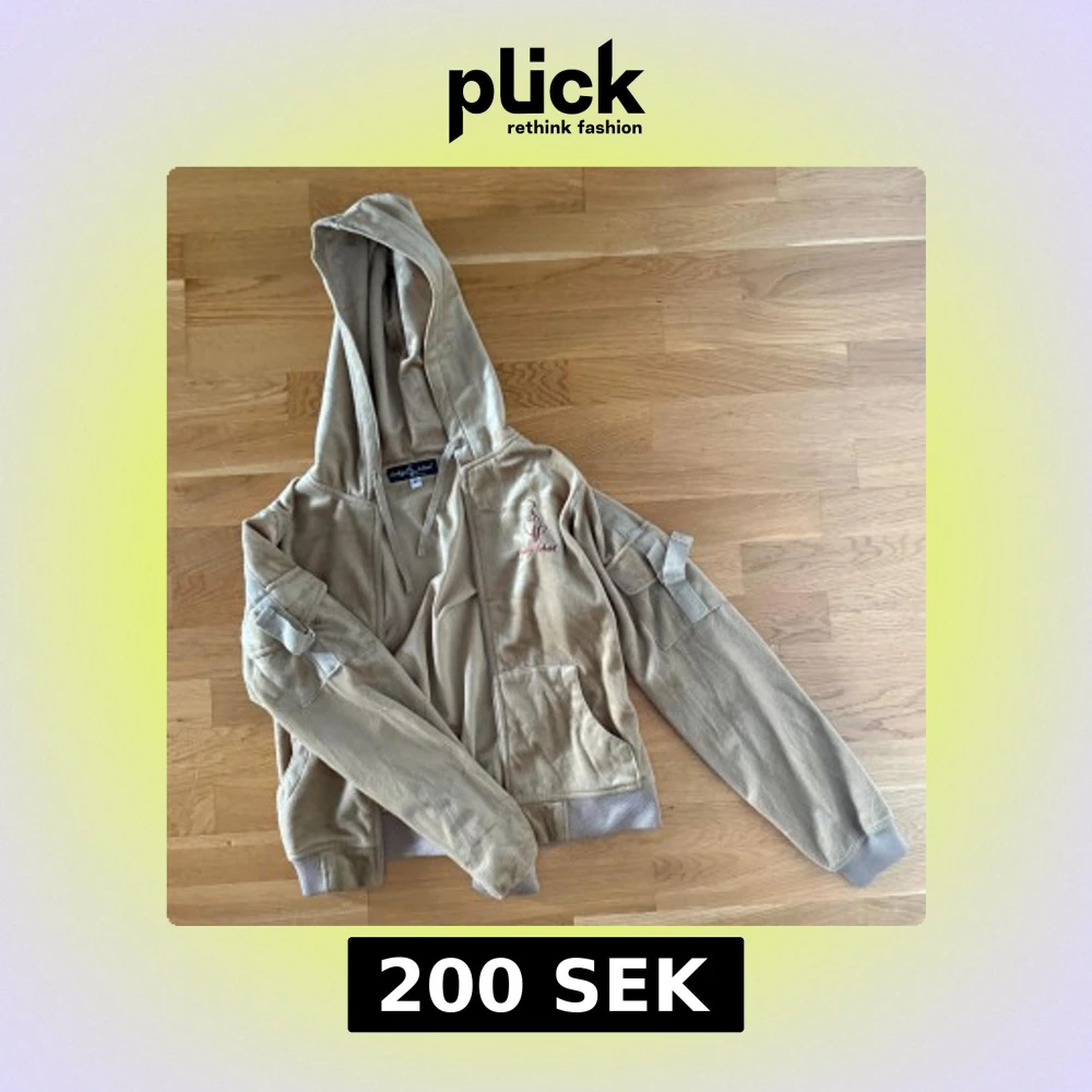 Säljer en guldbrun aktig kofta i sammet från Baby Phat. Tröjan har dragkedja, huva med snörning, broderad logga på bröstet och coola fickor med banddetaljer på ärmarna. Perfekt för dig som gillar 00-talsvibe. Passar även S🤎