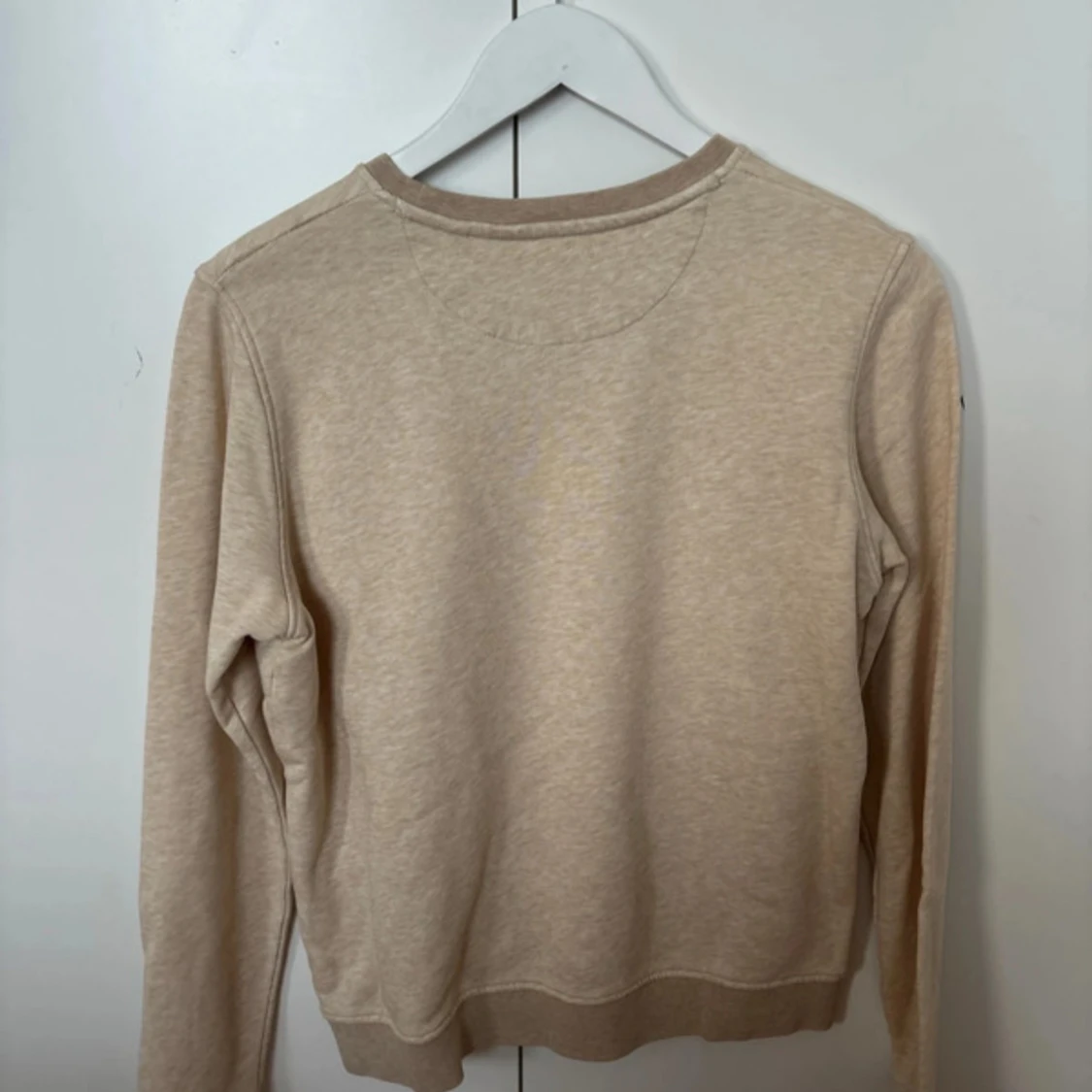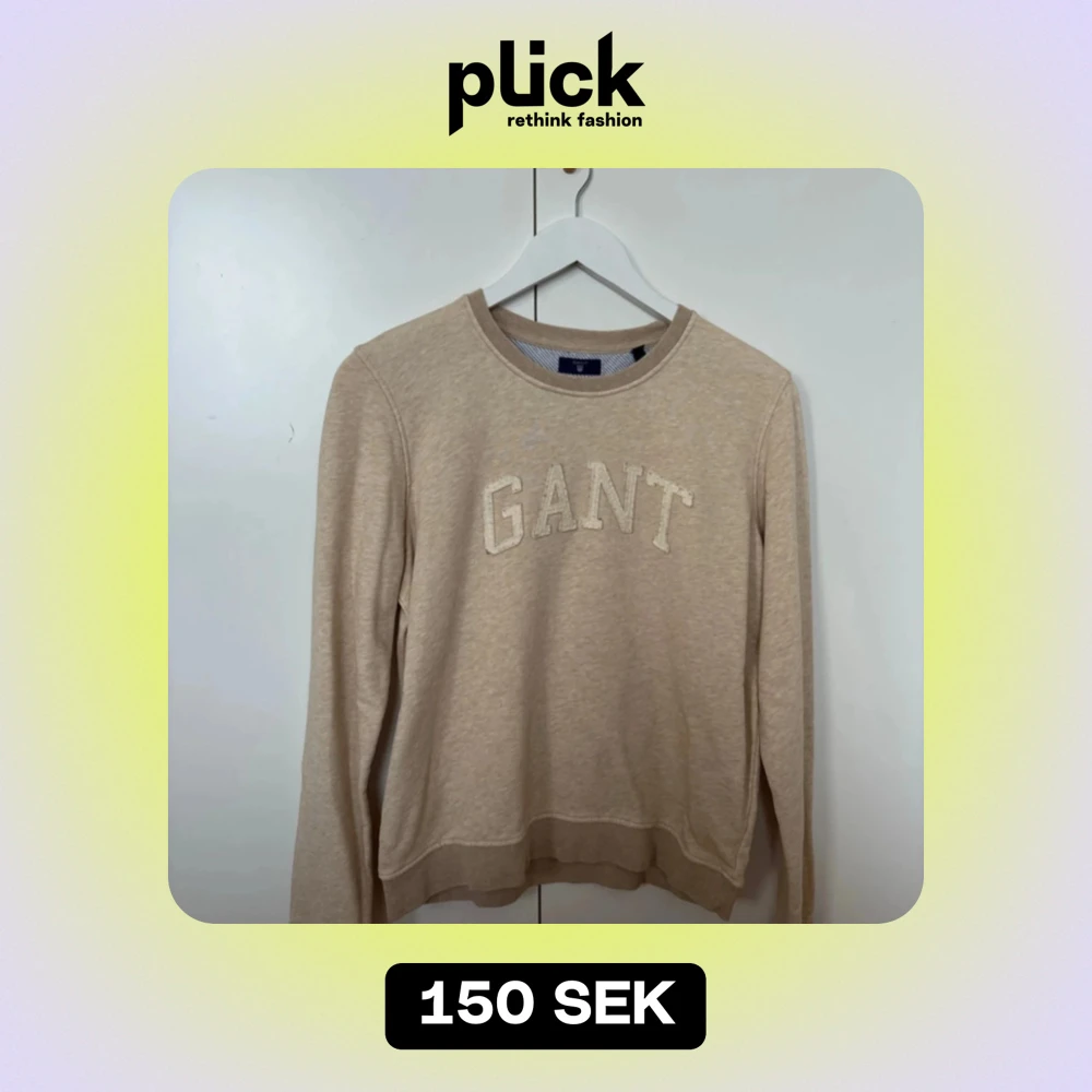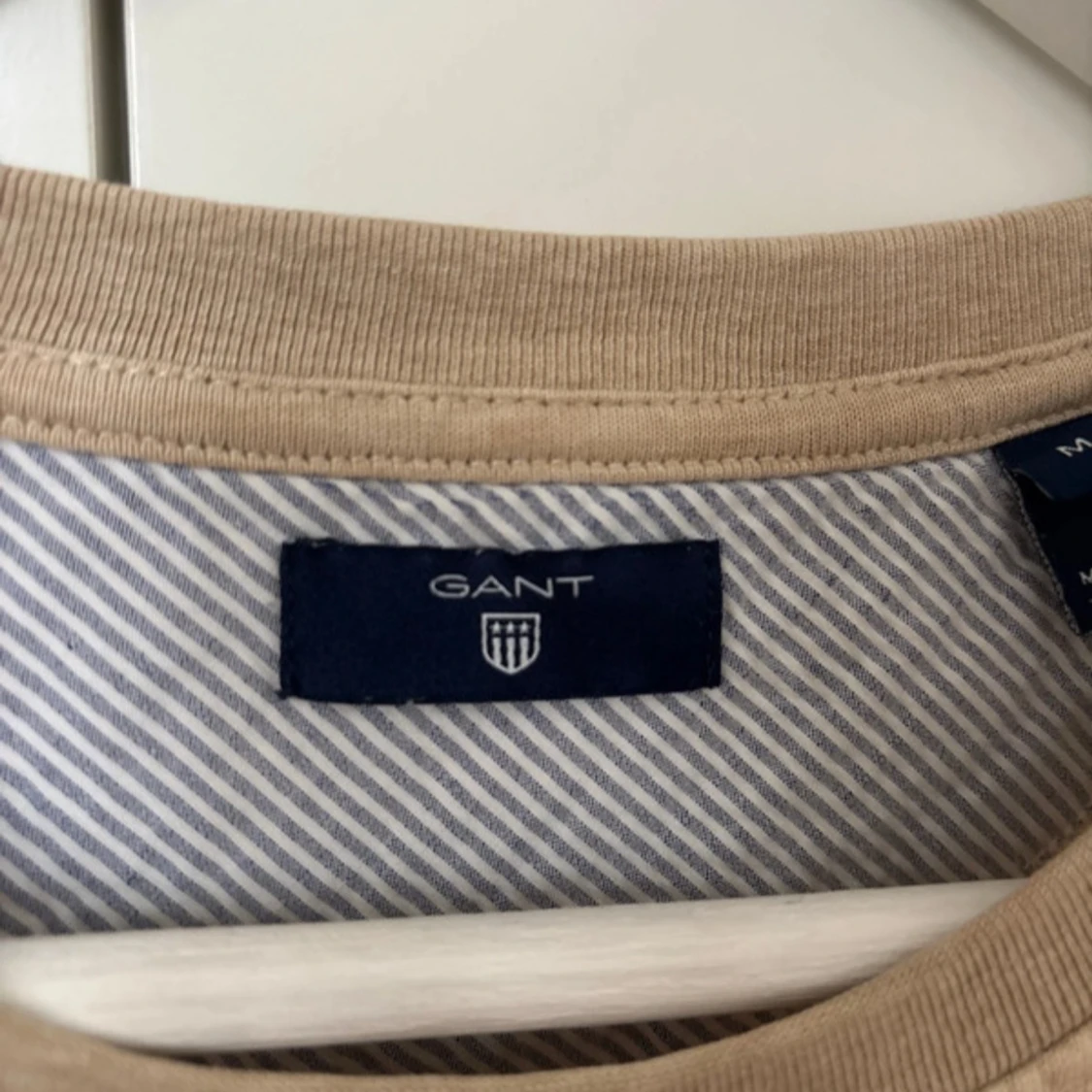 Säljer en beige sweatshirt från GANT i storlek M. Tröjan har ett klassiskt tryck med GANT-loggan på bröstet och är i mycket bra skick. Lite smått noppig på loggan, men går att ta bort lätt. Den är långärmad och gjort av bomullstyg