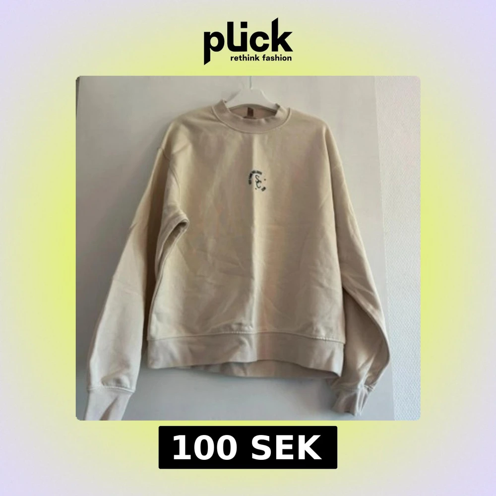 Enkel och stilren beige sweatshirt från H&M i storlek XS. Tröjan har rund halsringning, lång ärm och en liten svart broderad detalj på bröstet. Perfekt för en chill och avslappnad look. Tillverkad i mjuk bomullsmix.
