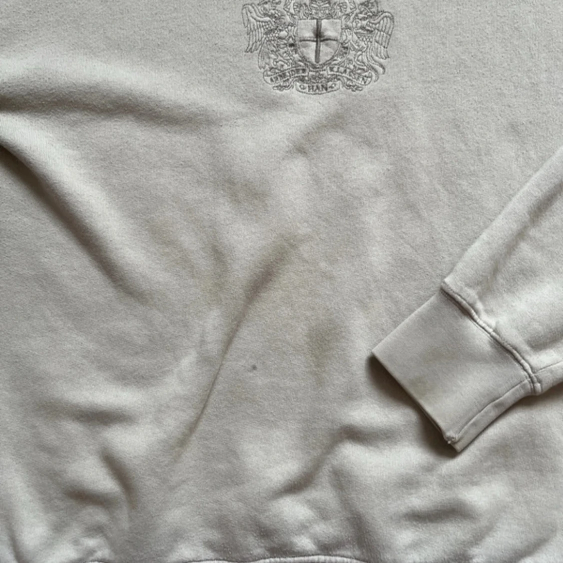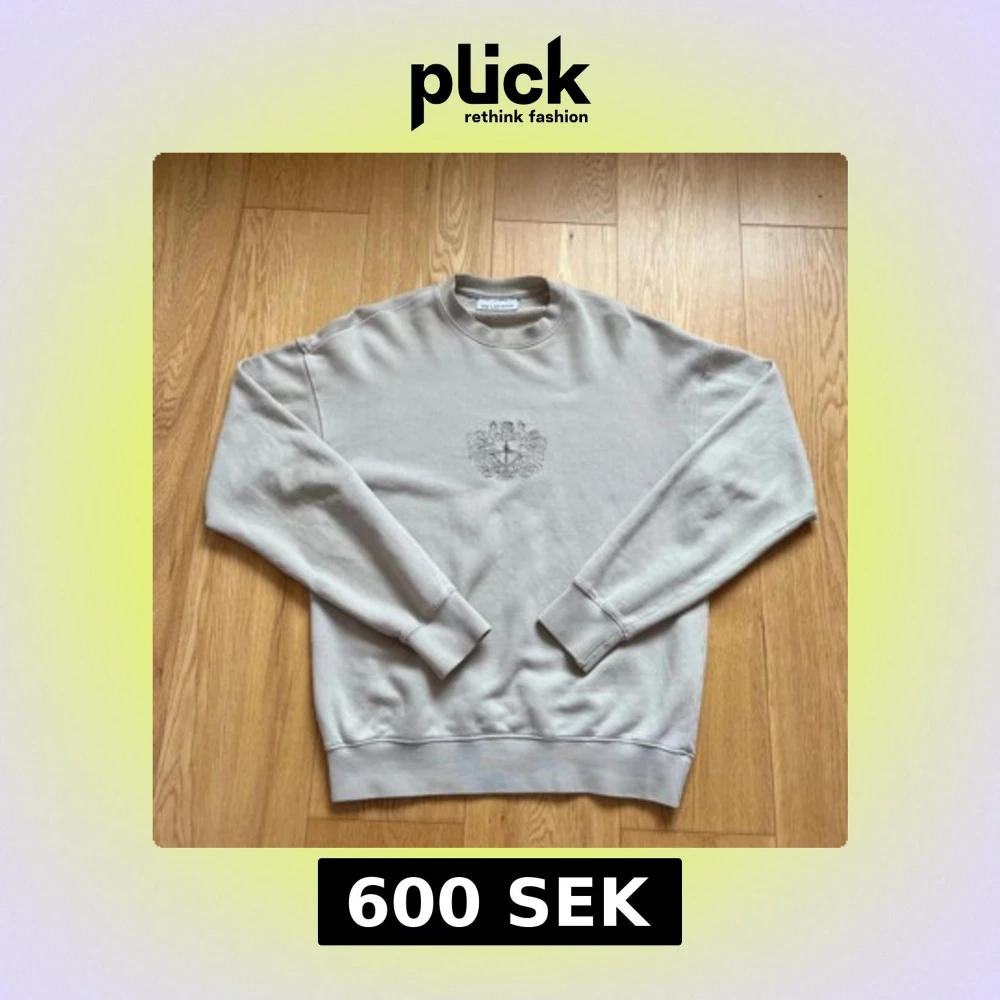 Snygg beige sweatshirt från Han Kjøbenhavn med broderad logga och emblem på bröstet. Tröjan är i St S och mycket bra skick. Finns bara en defekt som är den svarta pricken (se bild), annars är den fel fri. Ny pris 1620 kr.