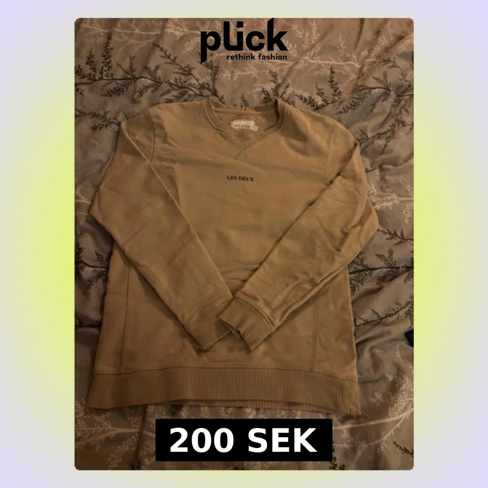 Snygg beige sweatshirt från Les Deux med diskret svart text på bröstet. Tröjan har rund hals, ribbade muddar vid ärmslut och nederkant samt långärmad passform. Storlek S. Tröjan är använd få tal gånger.