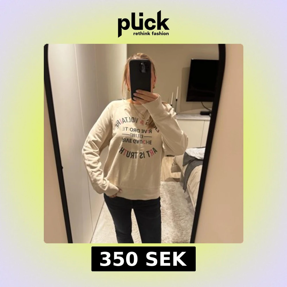 Säljer en supersnygg beige sweatshirt från Zadig Voltaire med tryck i svart, rosa och grönt framtill. Använt sparsam så därmed inga defekter, har inga fläckar eller liknande. Säljer då den inte används så mycket längre💗