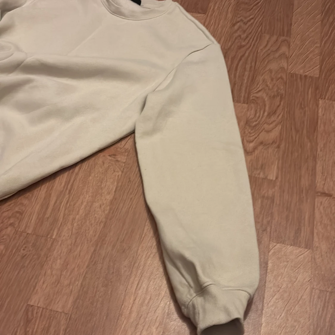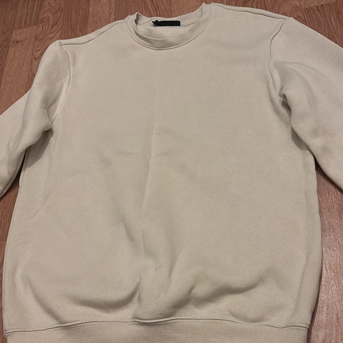 En stilren beige sweatshirt med rund hals och långa ärmar. Tröjan har ribbade muddar vid ärmslut och nederkant, vilket ger en klassisk och enkel look. Perfekt att matcha med jeans eller mjukisbyxor.
