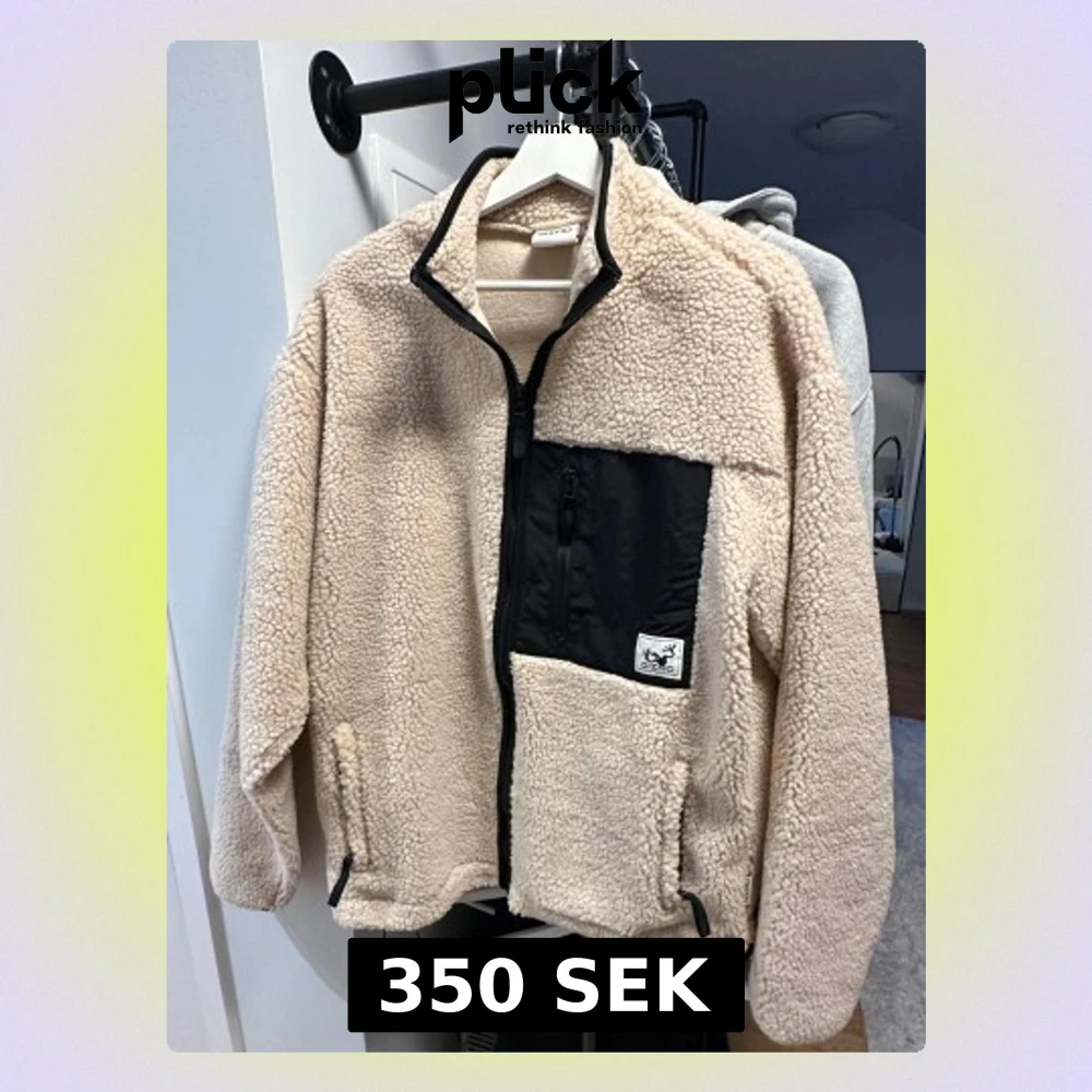 Mysig beige teddyjacka från Gizmo med svart bröstficka och dragkedja framtill. Jackan har hög krage, svarta detaljer och en patch med Gizmo-logga på bröstet. Perfekt för kyliga dagar och riktigt skön att bära. Helt ny!