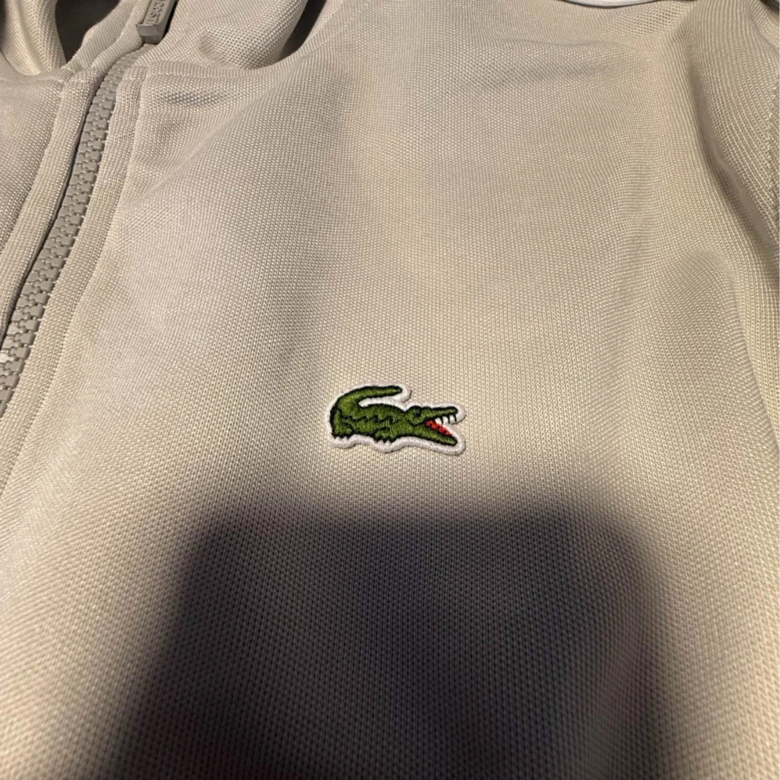 Snygg beige tracksuit från Lacoste i regular fit. Tröjan har dragkedja hela vägen, ribbade muddar och klassisk Lacoste-logga på bröstet. Perfekt för chill eller sportiga dagar, med stilren design och bekvämt material.