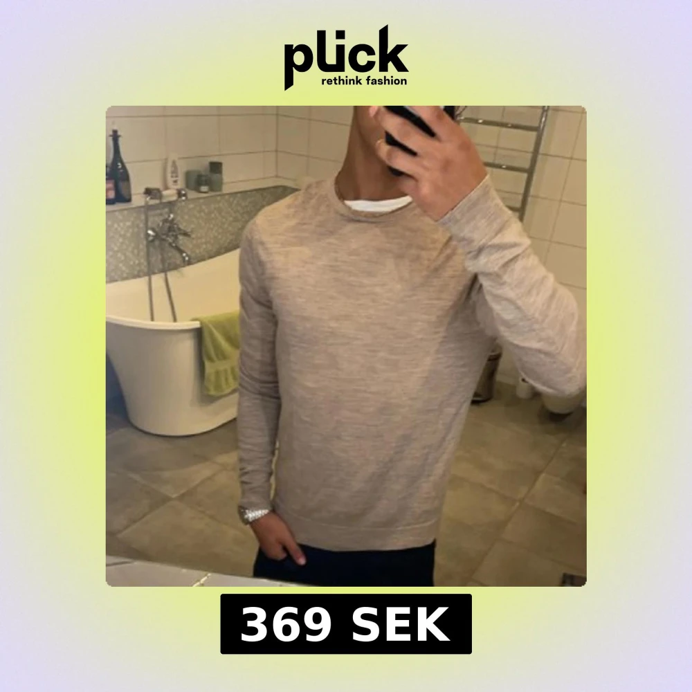 Säljer en stilren beige tröja från Jack & Jones i superfin merinoull. Tröjan har en klassisk rund hals och långa ärmar, perfekt för en elegant och bekväm look. Passar bra till både jeans och chinos.