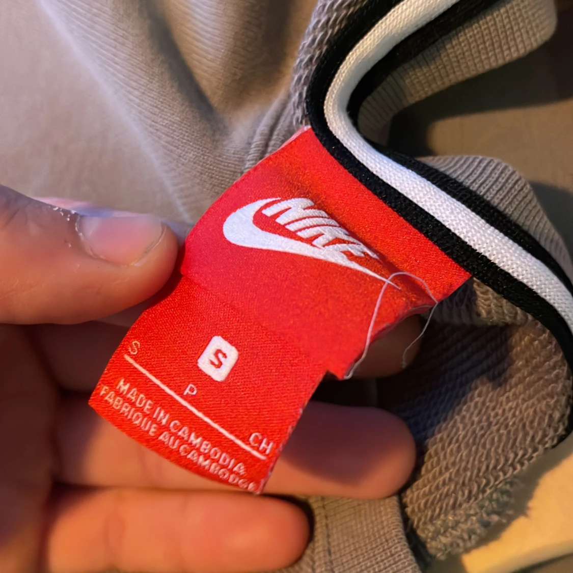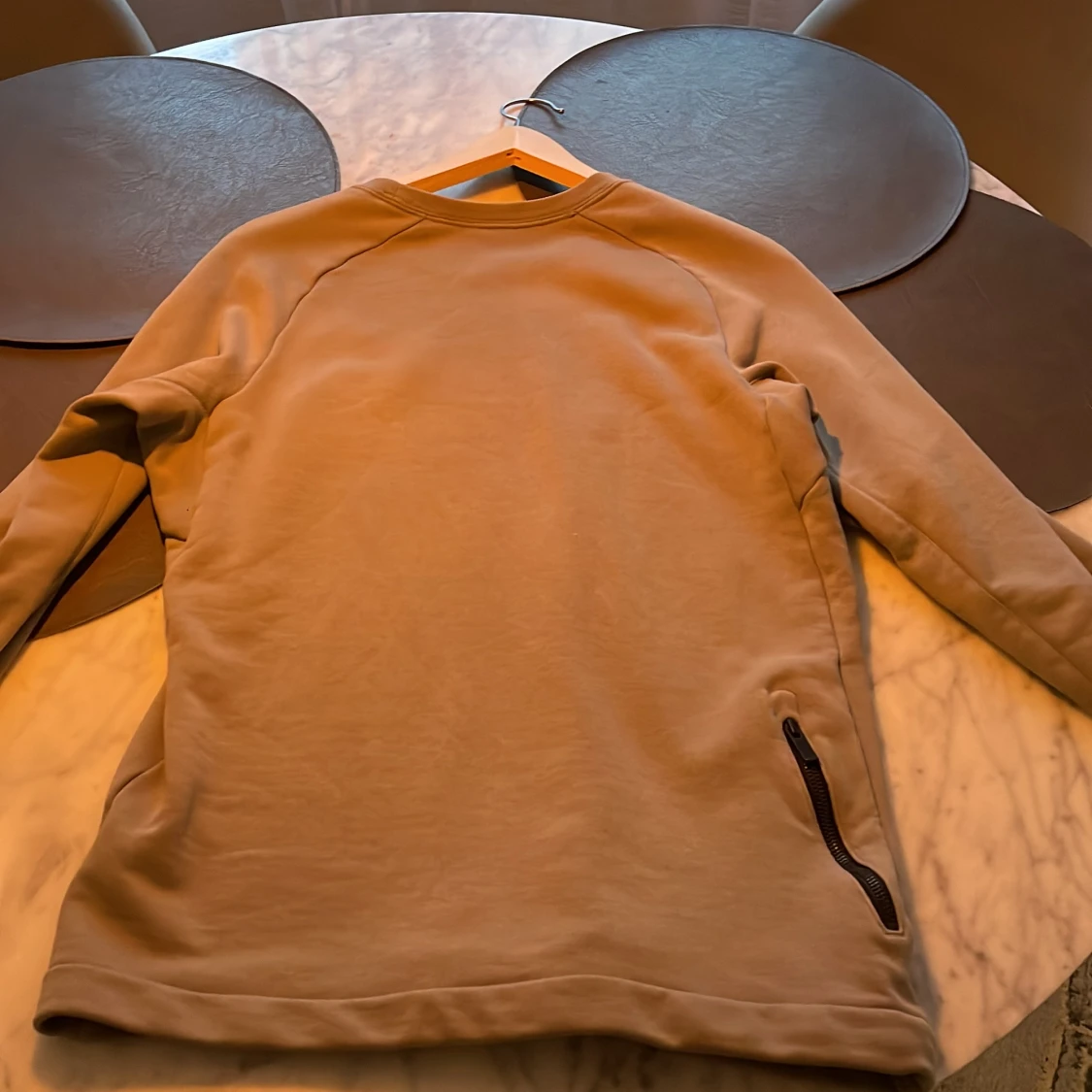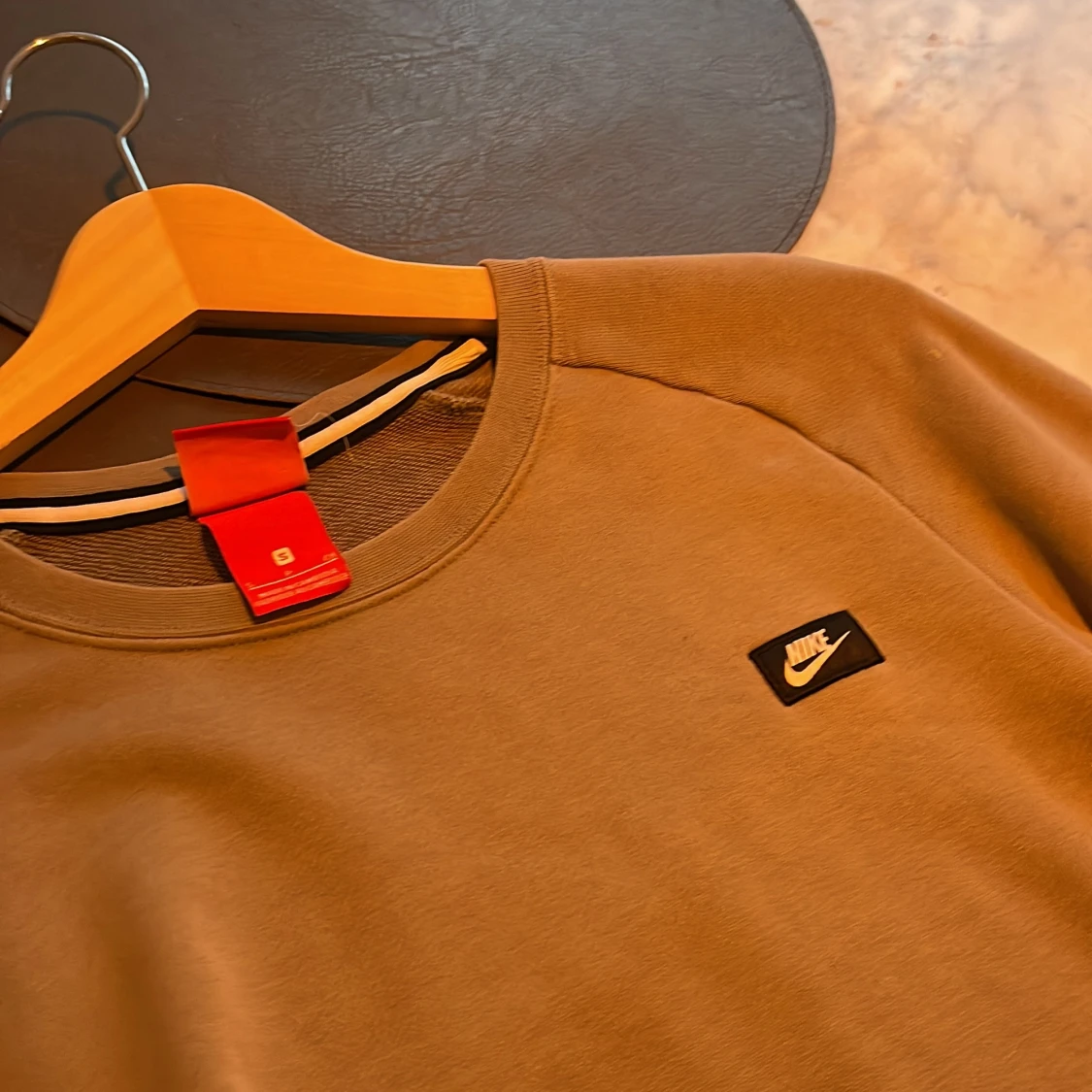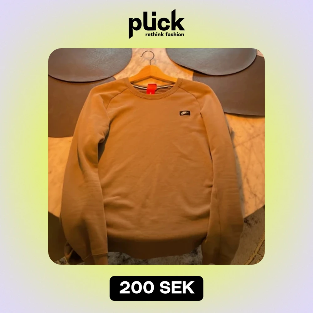Säljer en snygg beige tröja från Nike i storlek S. Den har en liten Nike-logga på bröstet och en praktisk dragkedja på sidan. Perfekt för en casual look eller träning. Tröjan är i bra skick och superbekväm!