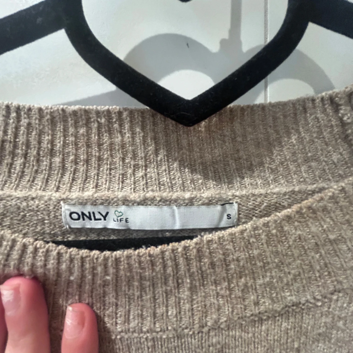 Säljer en stilren beige tröja från ONLY. Tröjan har en rund halsringning och långa ärmar, perfekt för kyligare dagar. Den är tillverkad i ett mjukt material som ger en skön känsla. Passar bra till både jeans och kjol.
