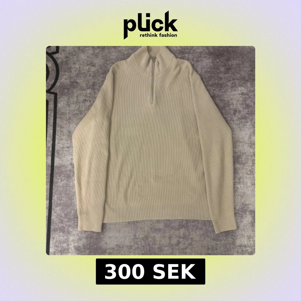 Säljer en beige ribbad tröja från ONLY & SONS med halv dragkedja och hög krage. Tröjan har lång ärm och är tillverkad i ett mjukt material som passar perfekt för lager-på-lager-stil.