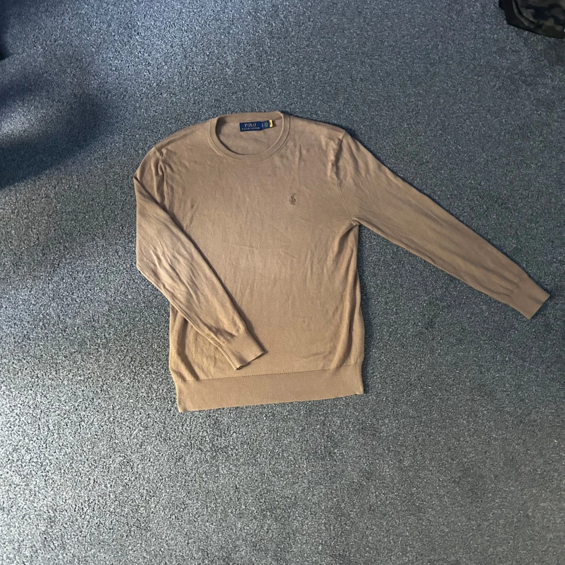 Snygg beige tröja från Polo Ralph Lauren med rund halsringning och diskret broderad logga på bröstet. Långärmad modell i mjukt material som sitter skönt och har ribbade muddar vid ärmslut och nederkant. Perfekt för en clean och stilren look.