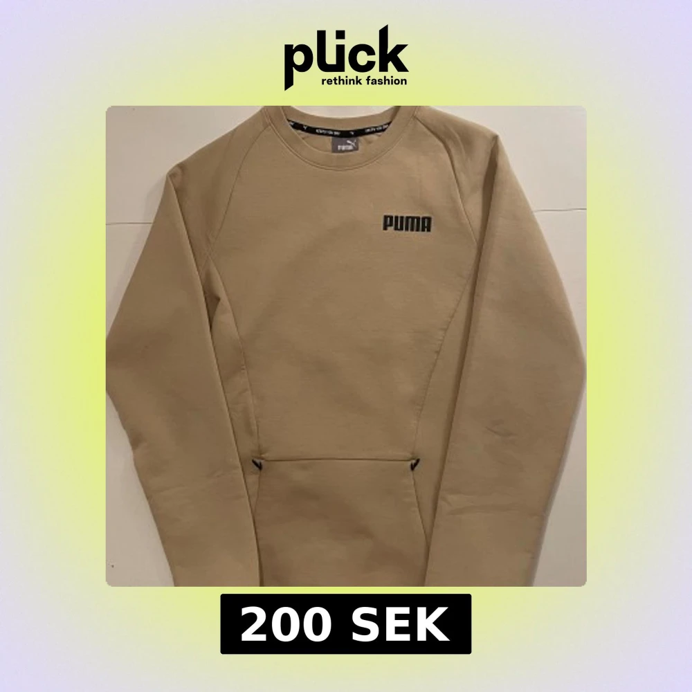 Säljer en stilren beige tröja från Puma med lång ärm och rund hals. Tröjan har en diskret Puma-logga på bröstet Perfekt för en avslappnad stil.