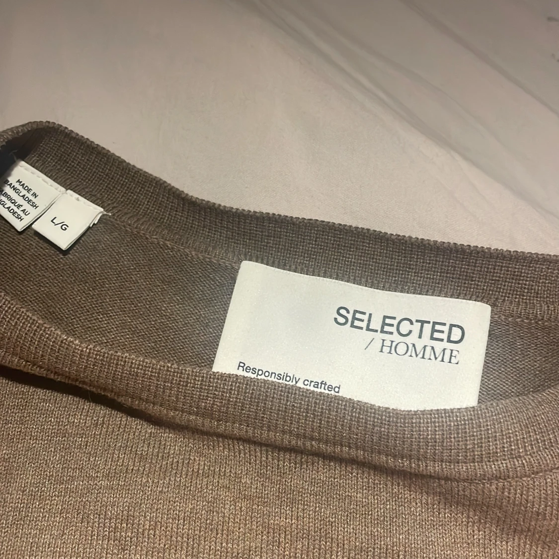 Säljer en stilren beige tröja från Selected Homme. Tröjan har en klassisk design med långa ärmar och rund halsringning. Perfekt för en avslappnad och snygg look.