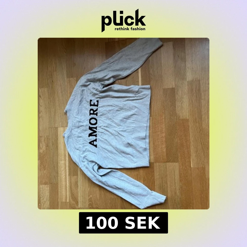 Beige långärmad tröja från Gina Tricot med svart texten 'AMORE' tryckt på bröstet. Tröjan har en klassisk passform och är gjord i mjuk bomullsblandning, perfekt för chill dagar. Enkel och stilren design som passar till det mesta. Säg till om du vill ha fler bilder❣️