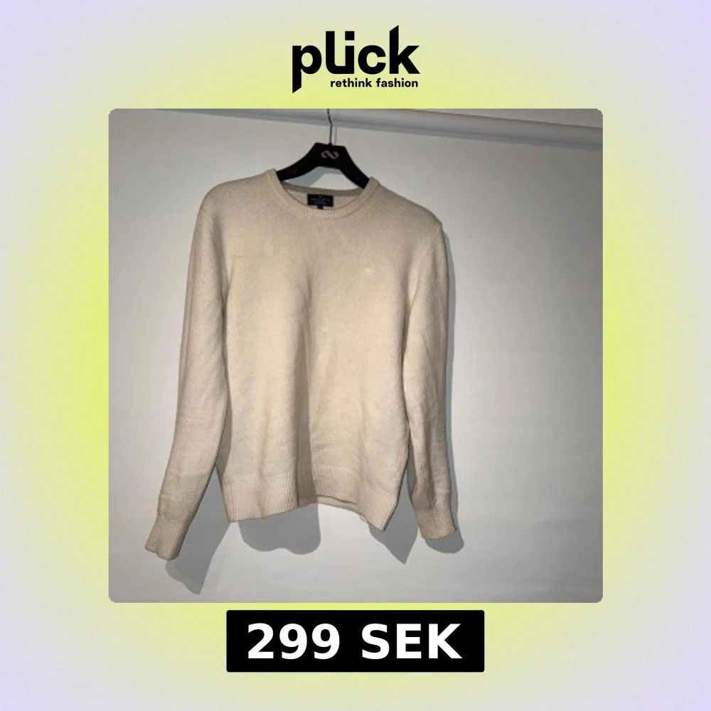 Säljer en stilren beige tröja från Hackett, tillverkad i 100% lammull. Tröjan har en klassisk rund hals och långa ärmar, perfekt för kyligare dagar. Den är mjuk och bekväm, idealisk för både vardag och mer uppklädda tillfällen. Är lite nopprig men är fortfarande i ett bra skick. Köpt för 1600 kr säljer för 299 kr