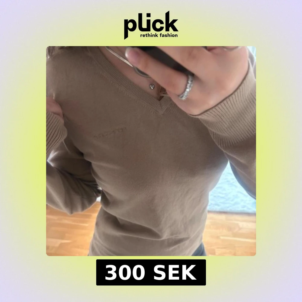 Säljer en brunbeige v-ringad tröja från Berkeley. Tröjan är i mjuk bomull, har långa ärmar och ribbade muddar vid ärmslut och nederkant. Enkel och stilren design med liten broderad logga på bröstet. Perfekt till jeans eller kjol.