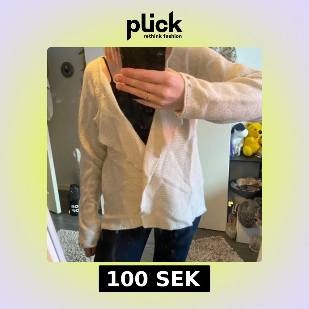 Säljer en stilren kofta med dekorativa knappar framtill. Koftan har långa ärmar och ett unikt mönster med korsstygn på ryggen. Perfekt för en avslappnad look.