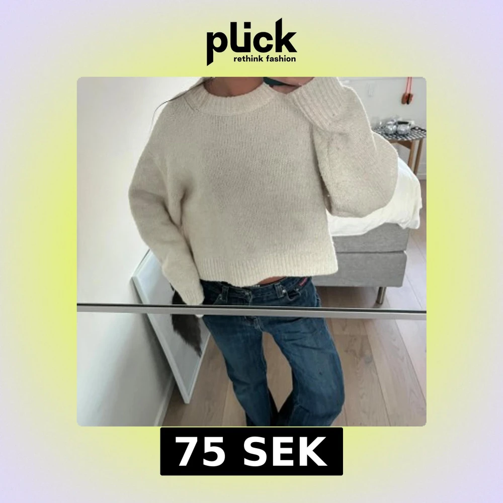 Mysig beige stickad tröja med en croppad design och långa ärmar.