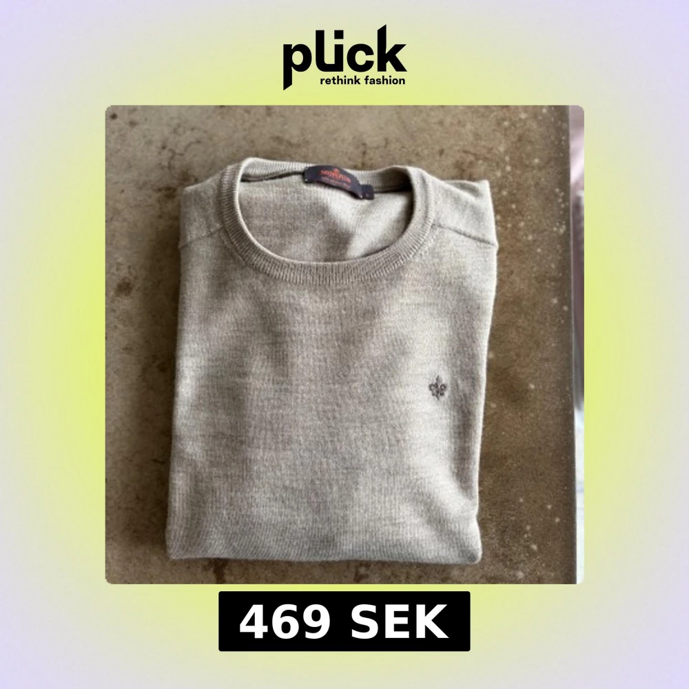 Snygg beige stickad tröja från Morris i 100% merinoull. Klassisk rund halsringning och diskret broderad logga på bröstet. Perfekt för lager-på-lager och passar till allt. Enkel och stilren design med lång ärm.