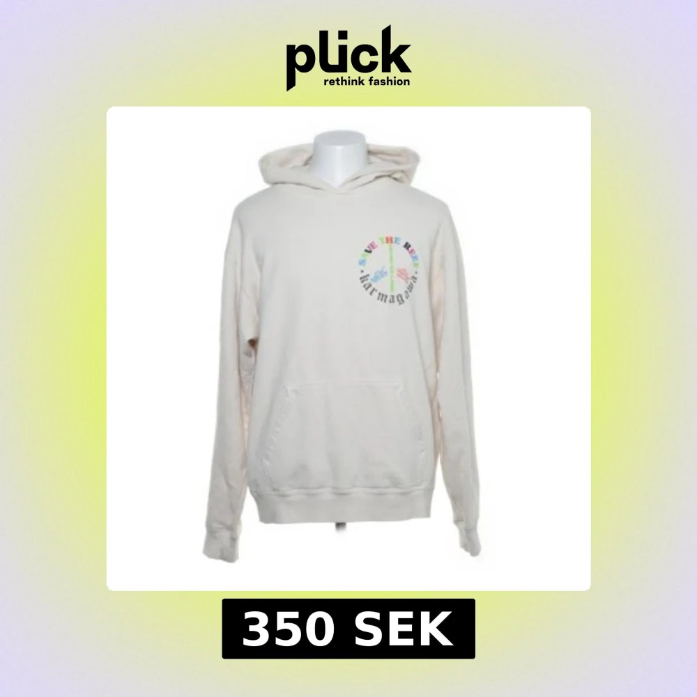 Säljer en beige hoodie från Karmagawa med färgglad text 'Save the Reef' på både fram- och baksidan. Hoodien har en klassisk känguruficka och en bekväm huva. Perfekt för en avslappnad stil. Ben vit hoodie från Karmagawa med en stor tryck på både fram- och baksidan. Trycket är en fredssymbol med texten Save the reef, Karmagawa, protect our planer, end racism, end animal curlierty.