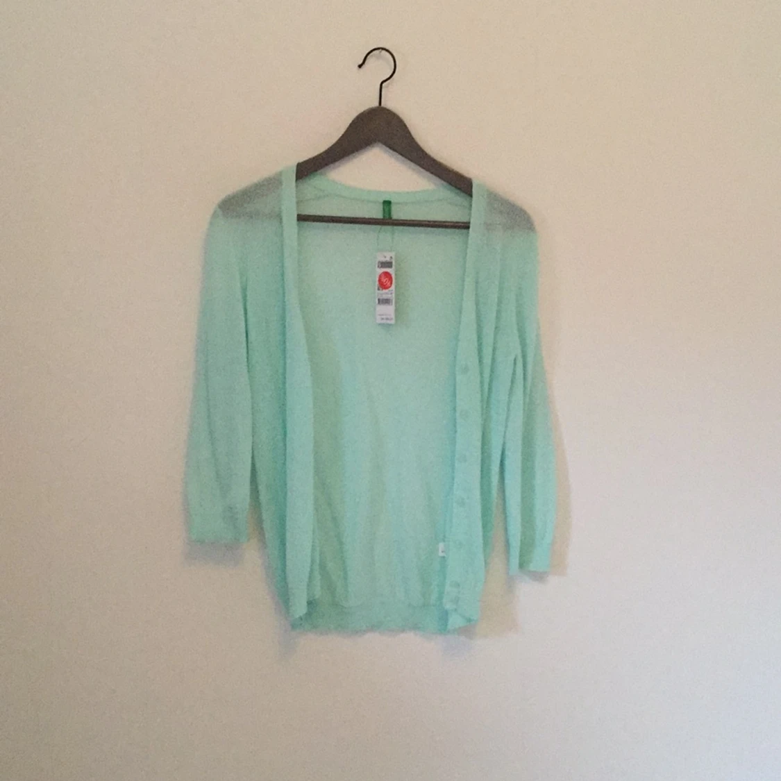 Fin, oanvänd kofta från Benetton. Trekvartsärmar. 57% bomull och 43% polyamid.