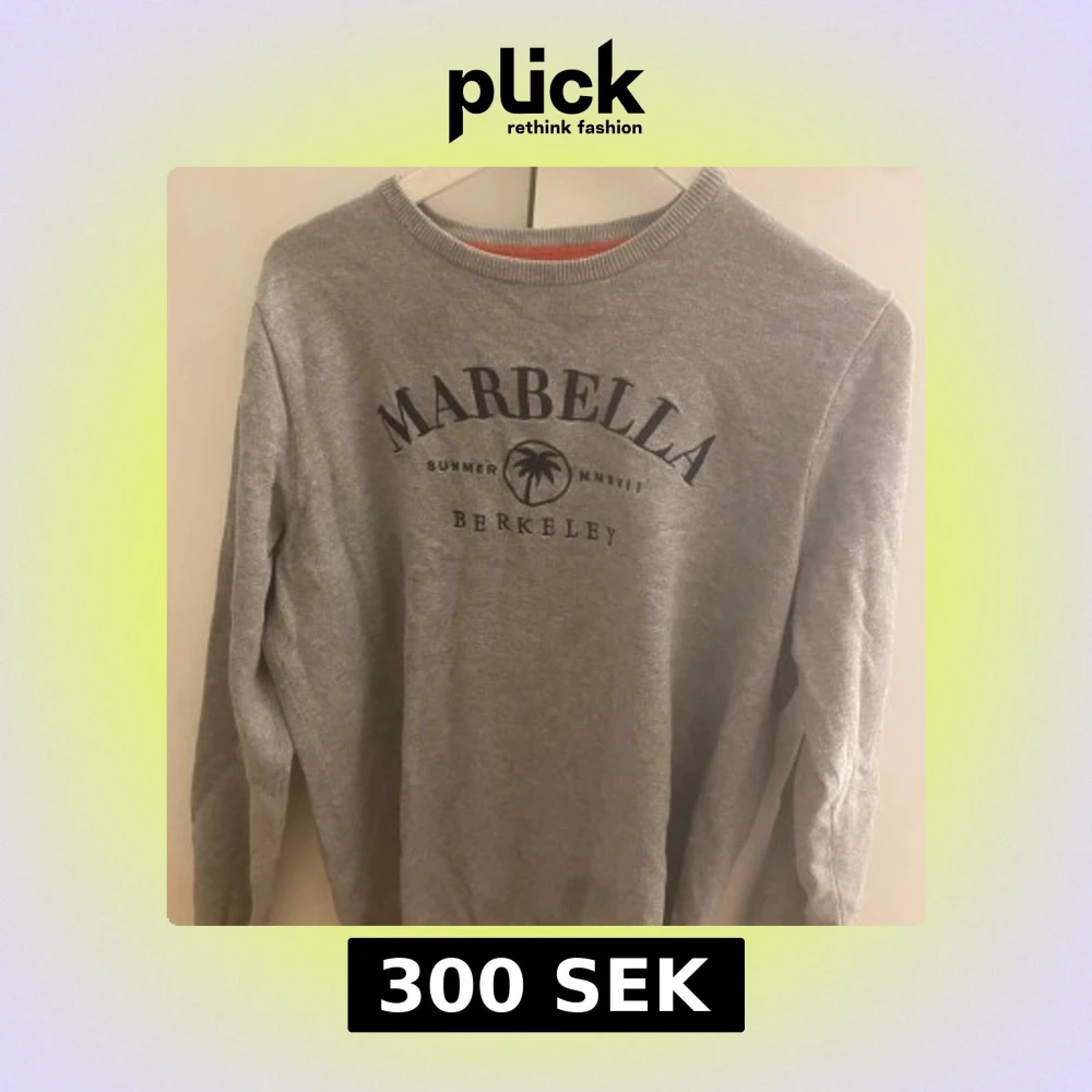 Grå sweatshirt med texten 'Marbella Berkeley' och palmtryck framtill. Rund halsringning och långa ärmar. Perfekt för en avslappnad stil.