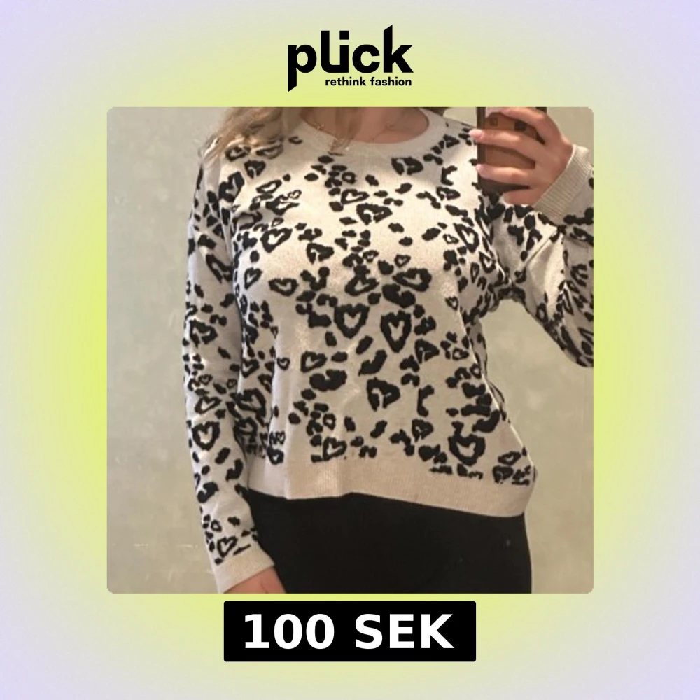 Snygg beige tröja med svart leopardmönster och hjärtformade detaljer. Tröjan har rund halsringning och långa ärmar, perfekt för dig som vill sticka ut lite extra. Mjuk och skön att bära till både jeans och kjol.