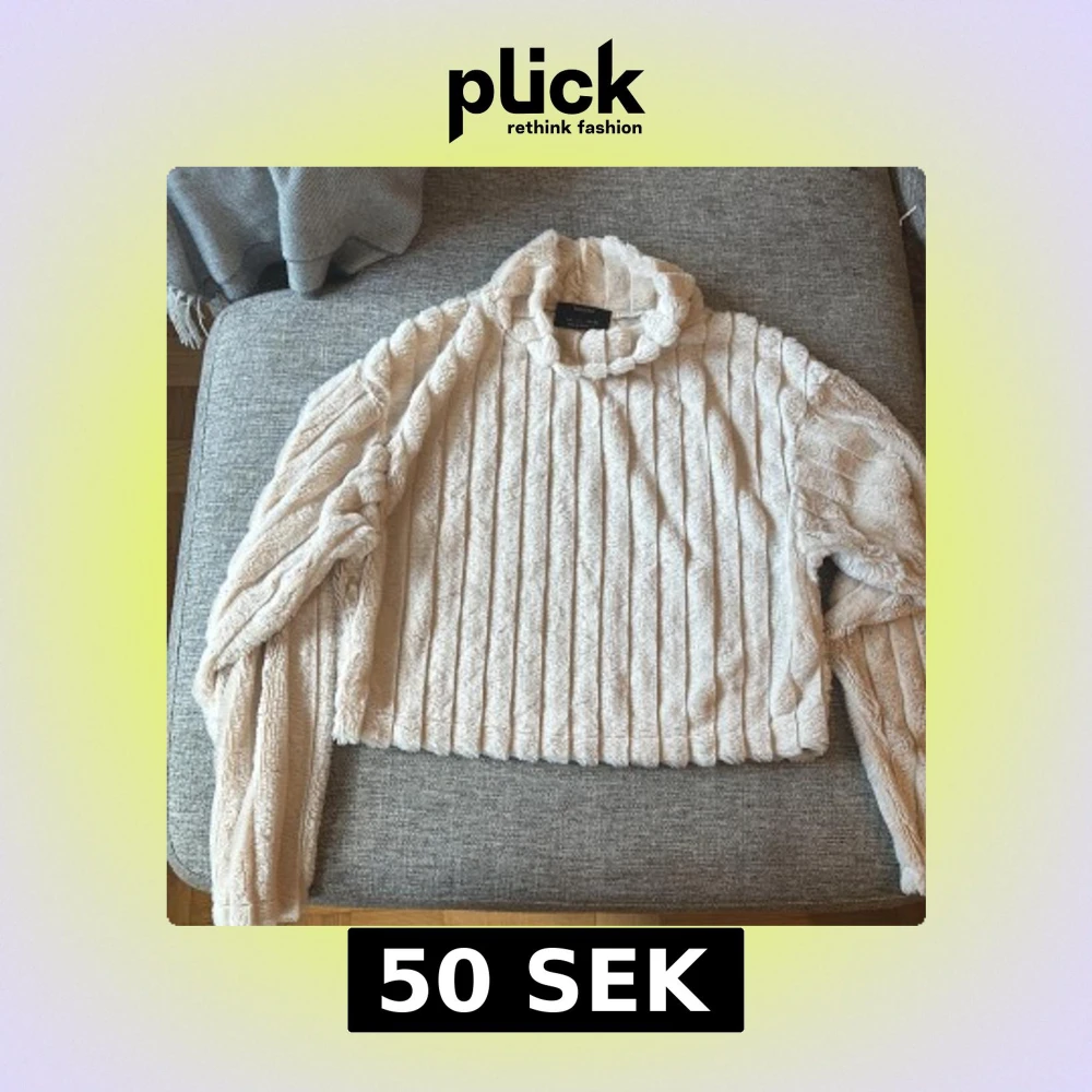 Supermjuk och fluffig beige tröja från Bershka i storlek S. Tröjan har lång ärm, hög krage och ett ribbat mönster som ger en mysig vibe. Perfekt för kyliga dagar när du vill vara både bekväm och snygg.