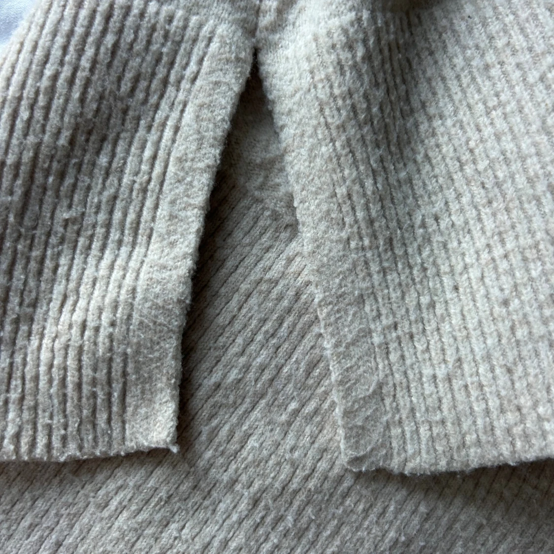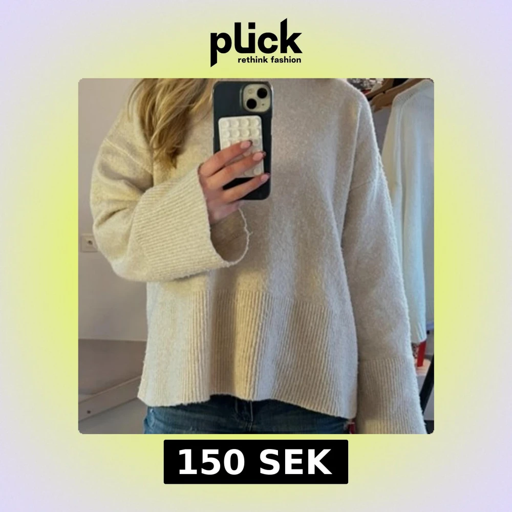 Mysig beige stickad tröja med breda ribbade muddar och slits i sidorna. Enkel och stilren design som passar till jeans eller kjol. Använd ett fåtal gånger🩷