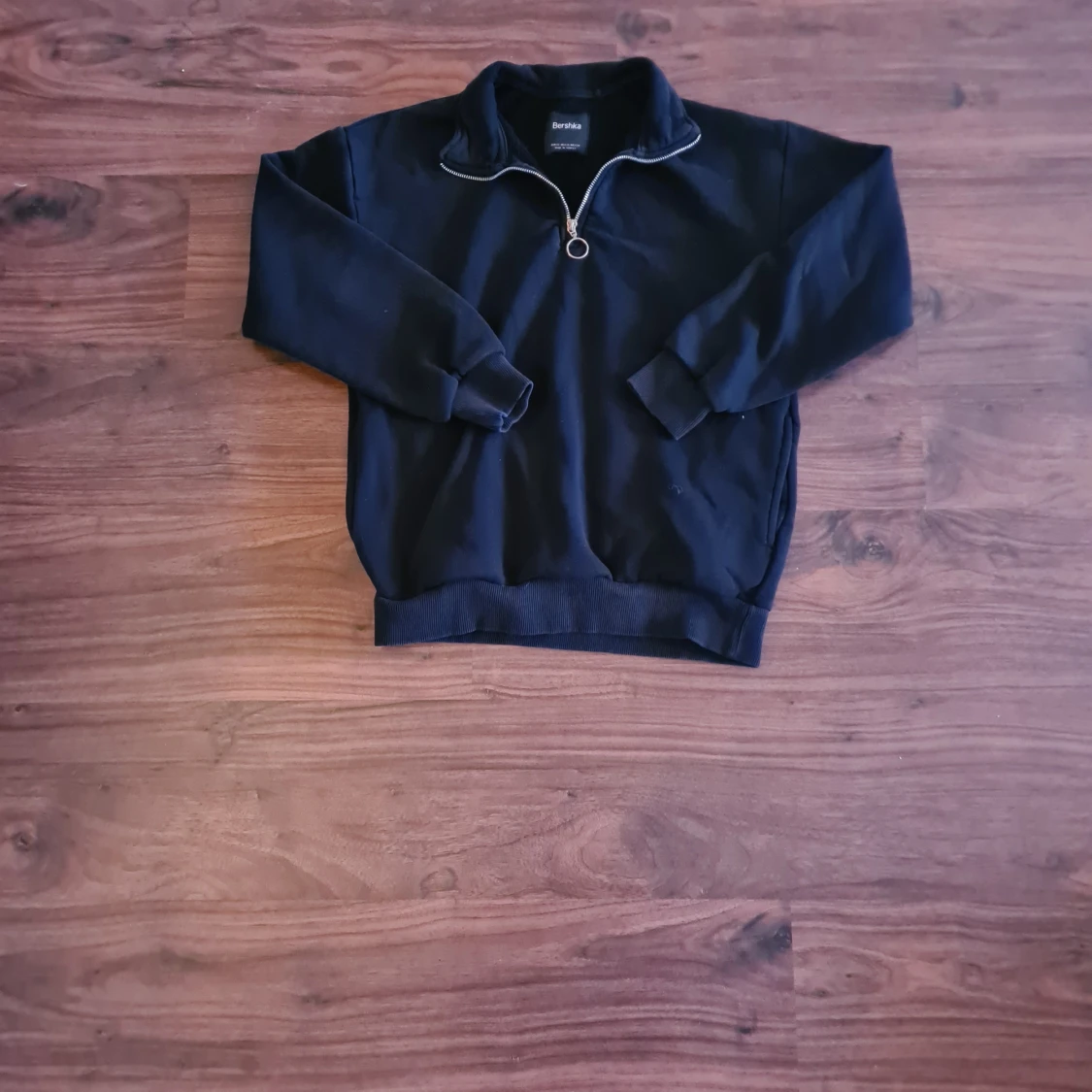 Snygg svart tröja från Bershka med dragkedja vid halsen. Använd, men inga defekter med den!