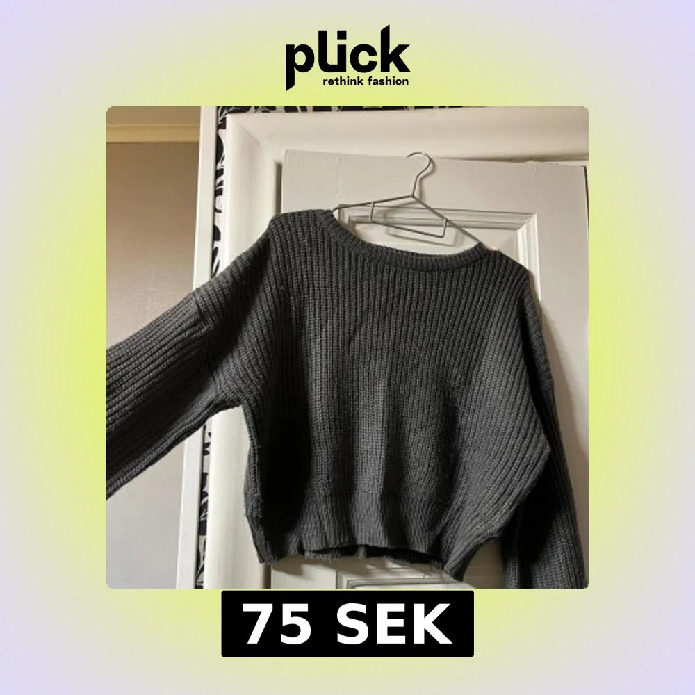 Säljer en mörkgrå stickad tröja från Boohoo i storlek M. Tröjan har en croppad men figurnära passform, bred ribbstickning och långa ärmar. Rund halsringning och mjukt material som gör den väldigt bekväm