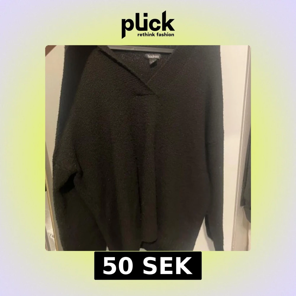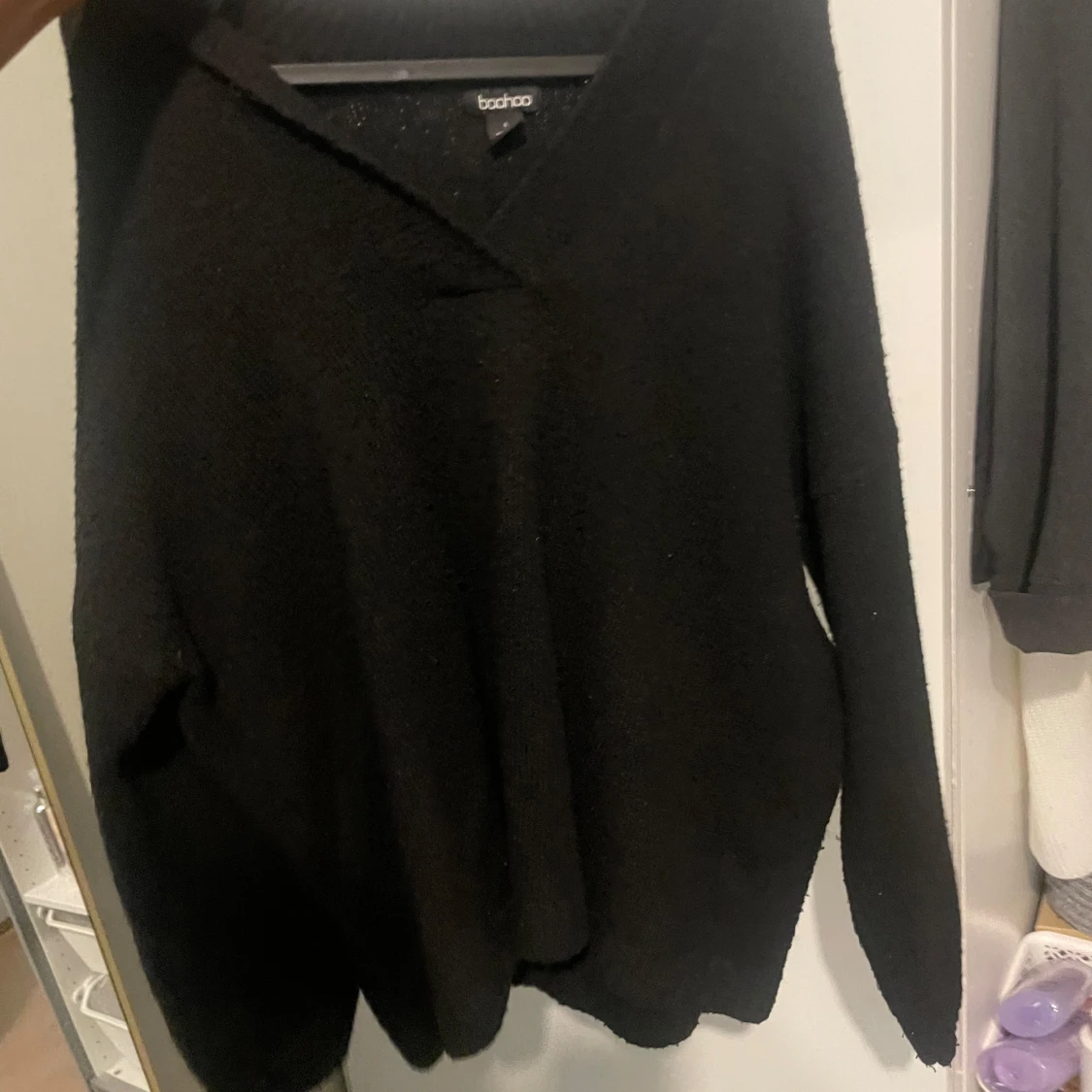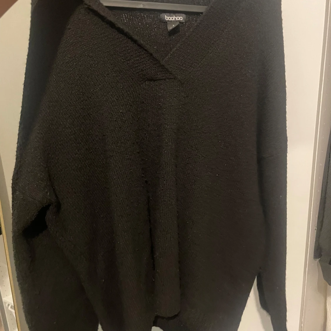 Mysig svart stickad tröja från Boohoo med v-ringning och lång ärm. Tröjan har en loose passform .