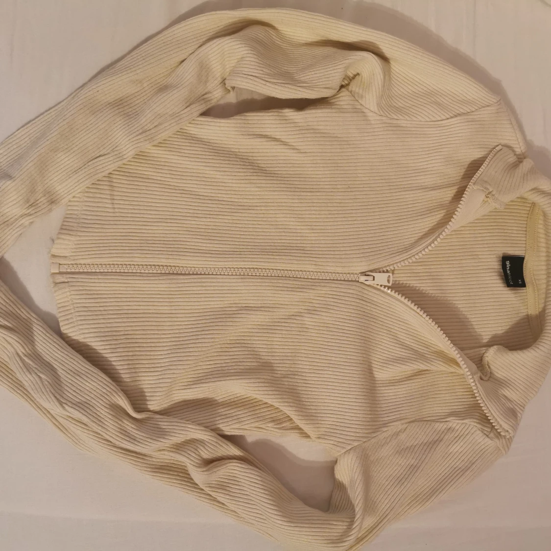 Säljer en beige ribbad kofta från Bik Bok i storlek XS. Koftan har lång ärm, är kroppad och hel dragkedja framtill, vilket gör den enkel att ta på och av. Materialet är mjukt och stretchigt, perfekt för lager-på-lager under hösten eller våren.