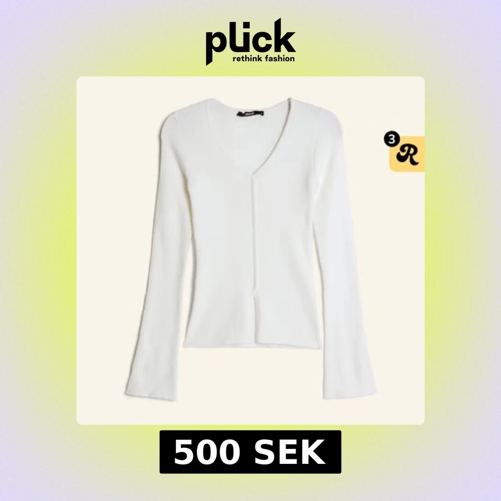 Säljer en slutsåld vit ribbad tröja från Bikbok med v-ringning och lång ärm. Tröjan är i storlek M och endast använd nån gång.