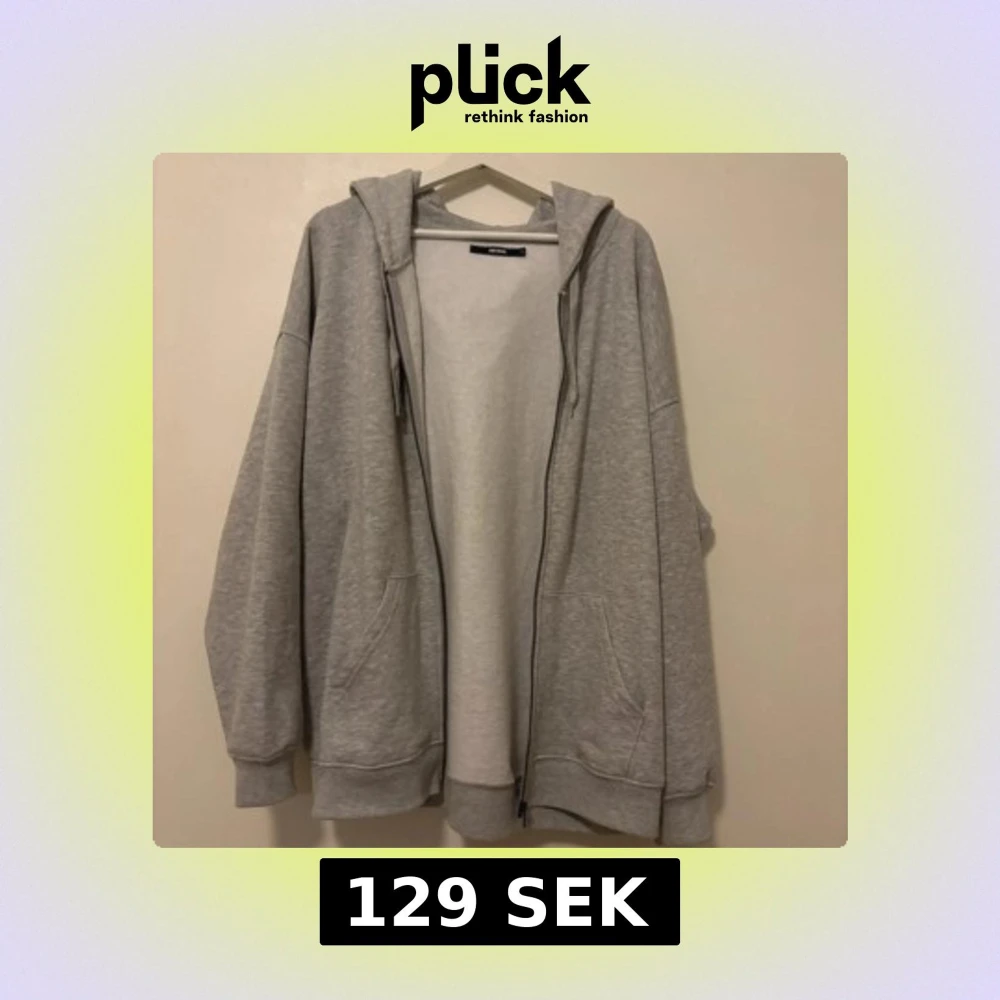 En grå hoodie från Bik Bok i storlek S. Den har en dragkedja framtill, är overzised