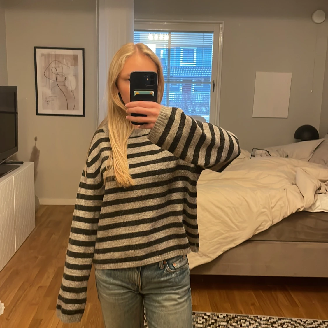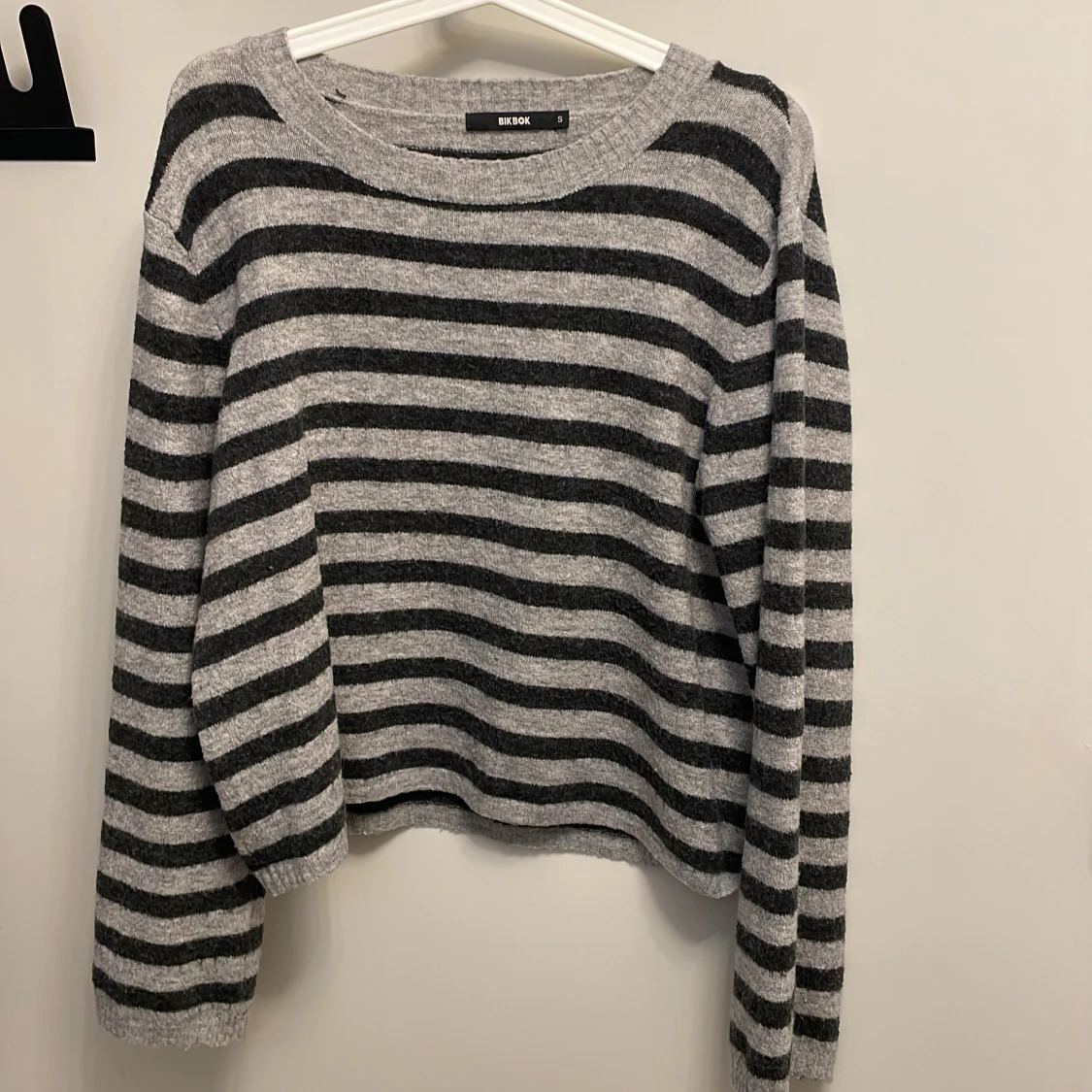 Säljer en supermysig randig tröja från Bik Bok i storlek S. Den är grå och svart med långa ärmar och en skön, lös passform. Tröjan är i bra skick. Säljer för att den aldrig kommer till användning.