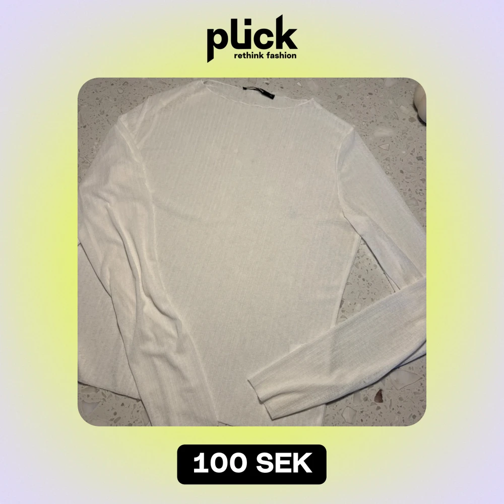Säljer en stilren vit långärmad tröja från Bik Bok. Perfekt för lager-på-lager eller som den är. Genomskinlig, Enkel design som passar till det mesta. 🖤jag har använt den som oversize, supersnygg!