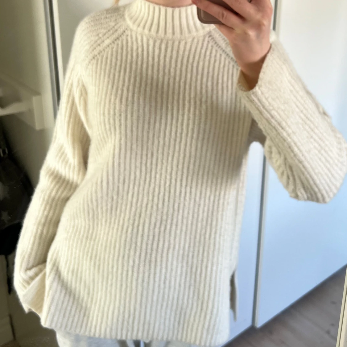Säljer en mysig vit stickad tröja med ribbad design och långa ärmar. Den är i st XS men passar även mig som vanligtvis har S. Tröjan är från Bikbok och knappt använd, inga defekter. Priset kan diskuteras! 🤍
