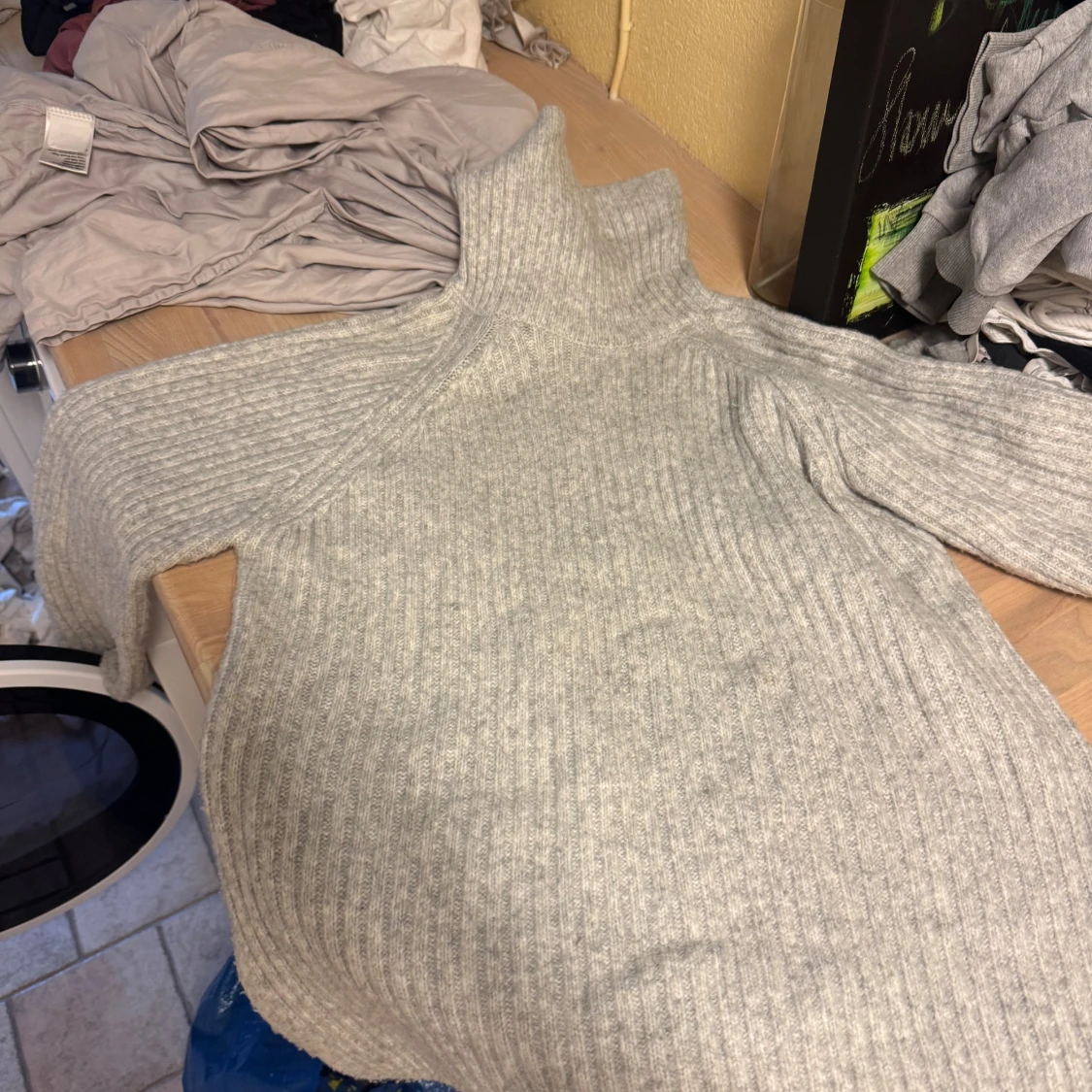 Mysig grå stickad tröja från bikbok med hög hals. Knappt använd