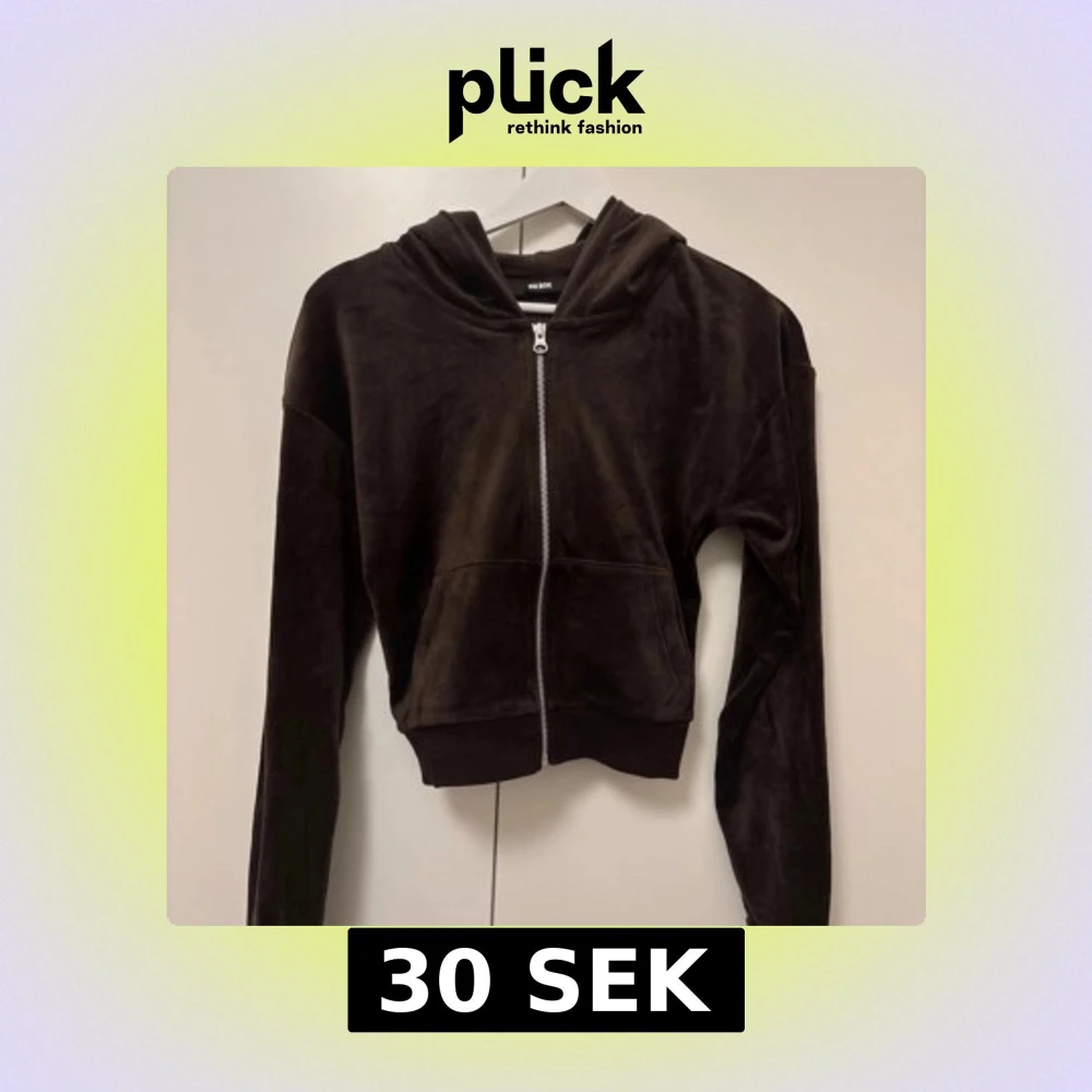 Säljer en brun hoodie från Bik Bok i mjukt sammetstyg. Den har en dragkedja framtill och en bekväm huva. Perfekt för en avslappnad stil.