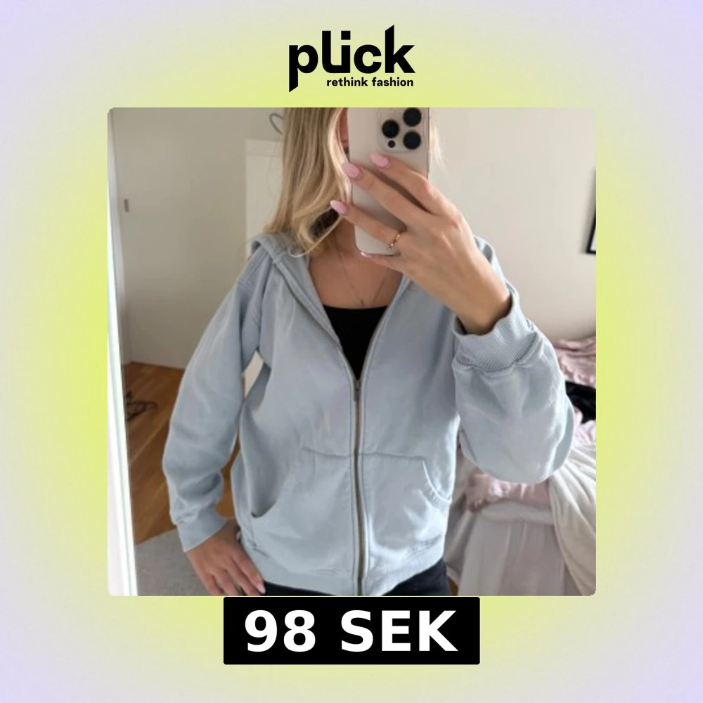 Säljer en ljusblå hoodie från Bikbok i storlek XS. Hoodien har dragkedja framtill, två fickor. Materialet på insidan är fortfarande mjukt. Passformen är normal och ärmarna är långa med ribbade muddar.