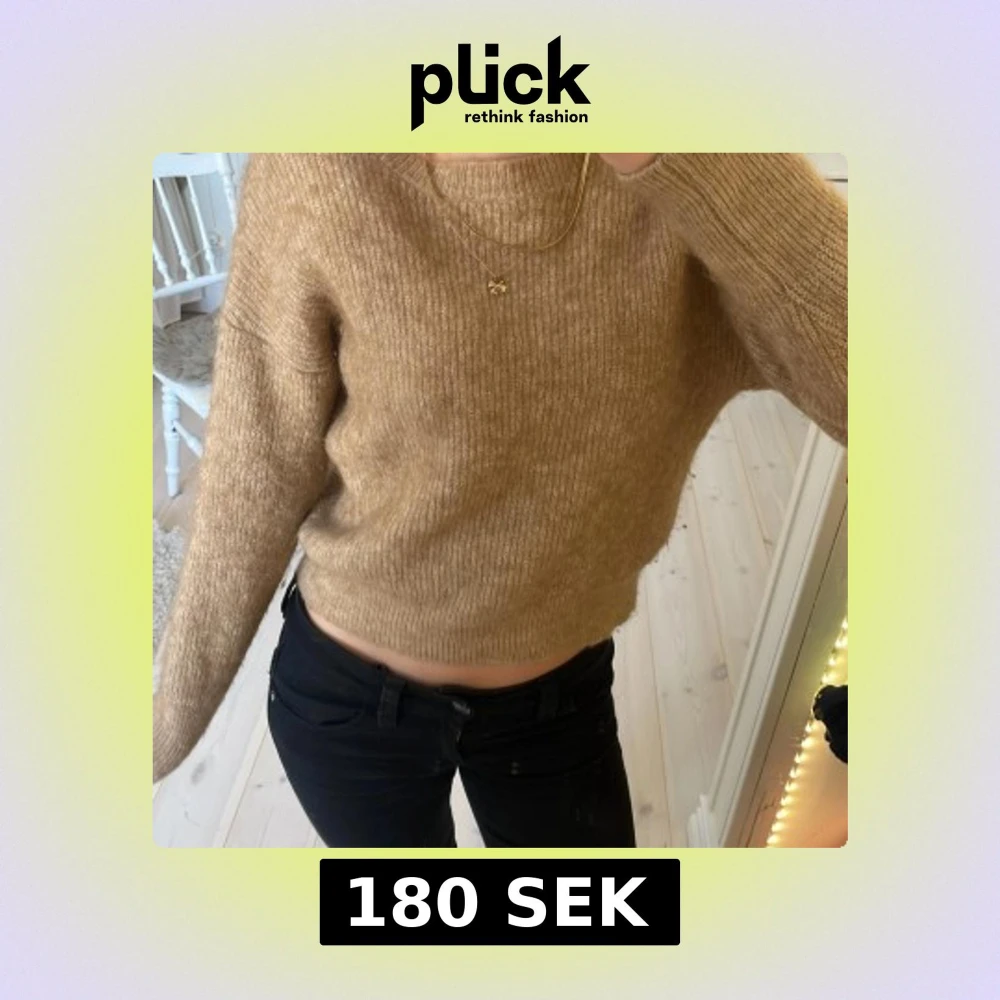Säljer en beige stickad tröja från BikBok i mohairblandning i storlek xs💓