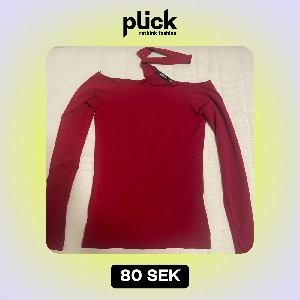 Säljer en snygg röd offshoulder topp från BikBok i storlek XS. Perfekt för festliga tillfällen med sin tighta passform och långa ärmar. 80kr +frakt