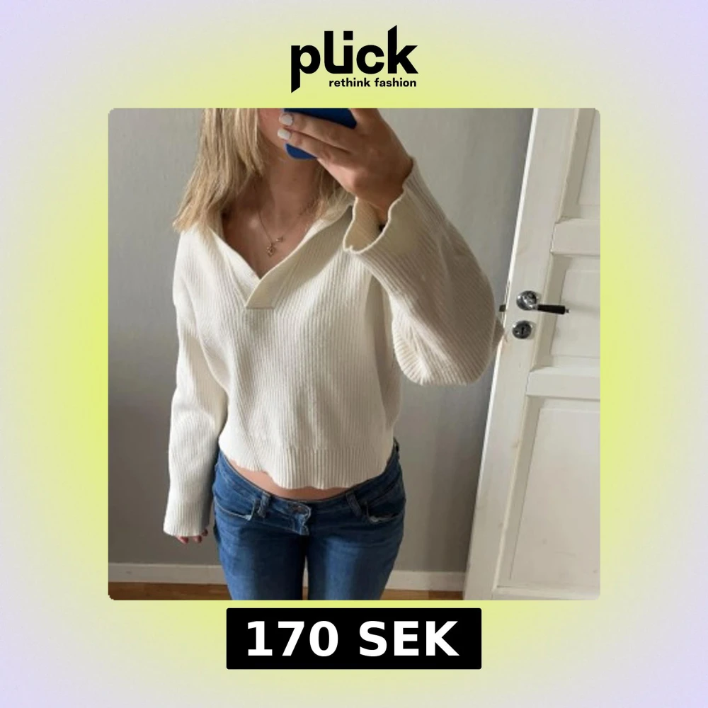 Säljer en vit croppad stickad tröja med v-ringning och långa ärmar från BikBok