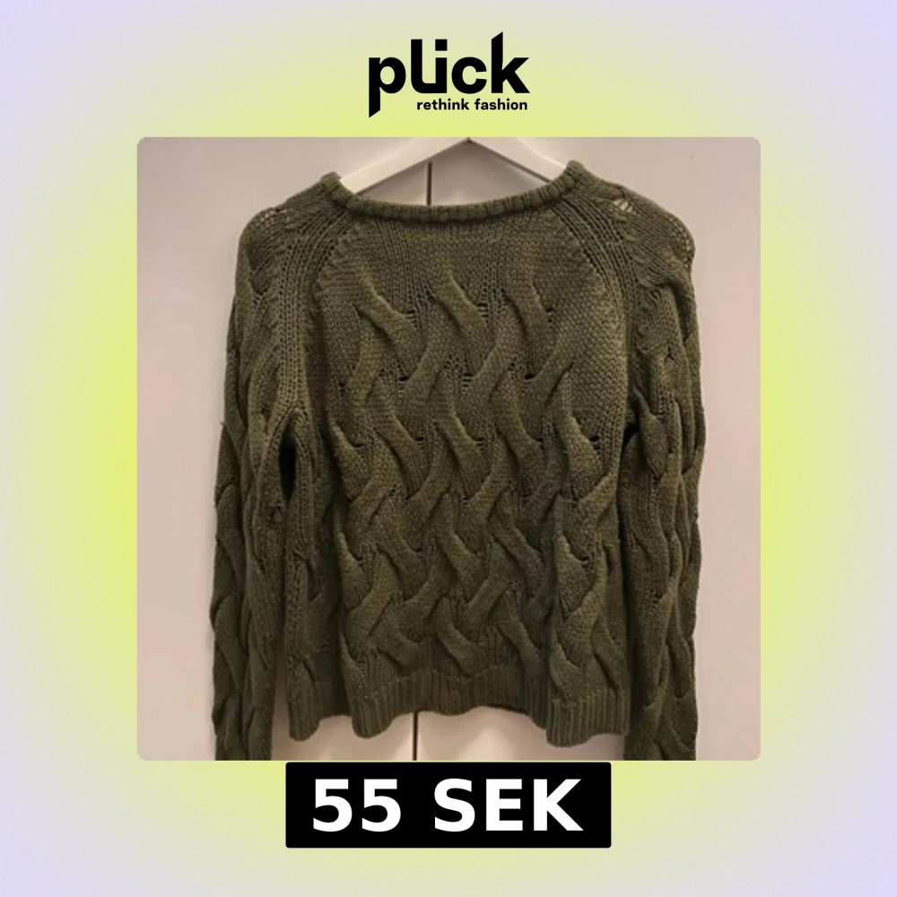 Säljer en olivgrön stickad tröja från Bik Bok i storlek XS. Tröjan har ett chunky flätmönster över hela och ribbade muddar vid hals, ärmslut och nederkant. Perfekt för dig som gillar mysiga och trendiga plagg med lite extra struktur.