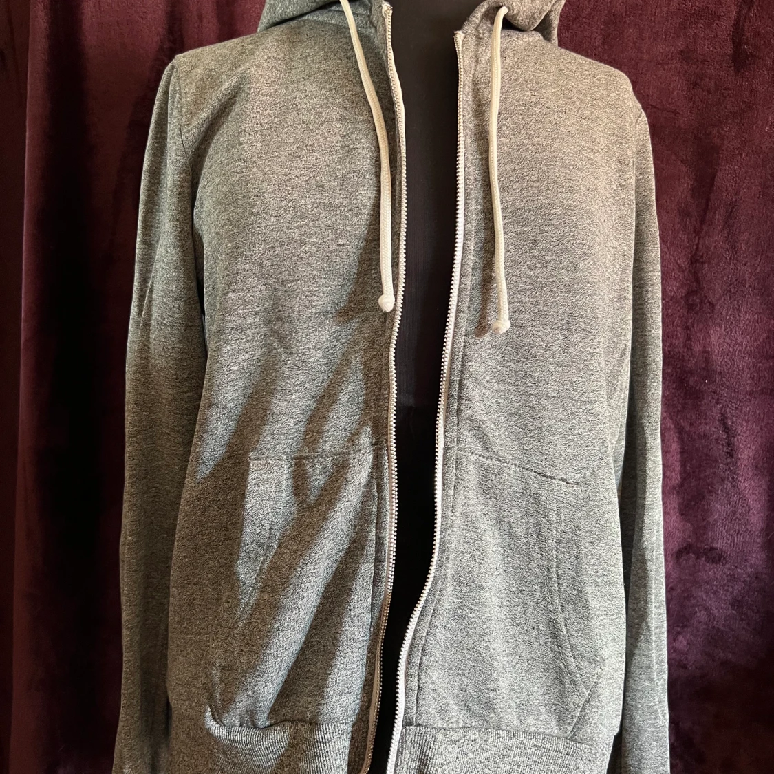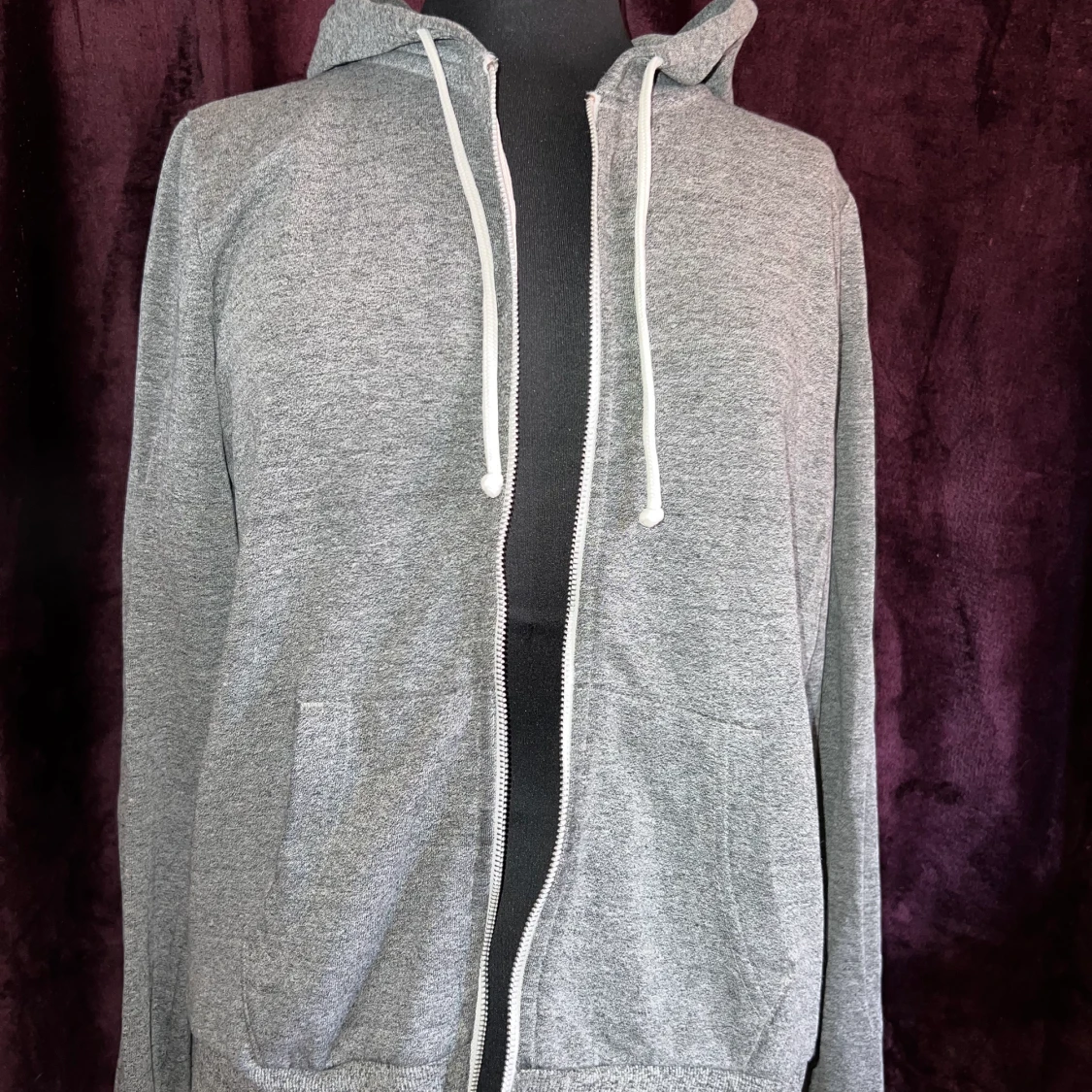 En grå helt vanlig kofta, skönt och fyller sin funktion. Det står ingen storlek men passar mig bra som är en m