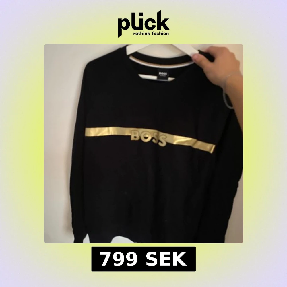 Svart långärmad tröja från BOSS med en snygg guldig rand och BOSS-logga över bröstet. Tröjan har rund halsringning och är tillverkad i mjuk bomull, perfekt för en chill och stilren look.