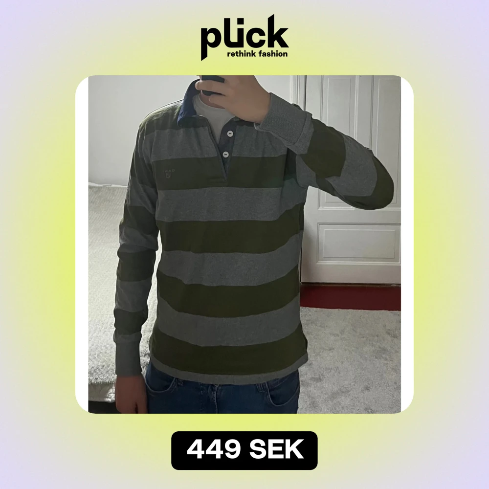 Säljer en snygg randig pikétröja från GANT i grönt och grått. Tröjan har långa ärmar och en klassisk krage med knappar. Perfekt för en avslappnad men stilren look. Passar bra till både jeans och chinos!